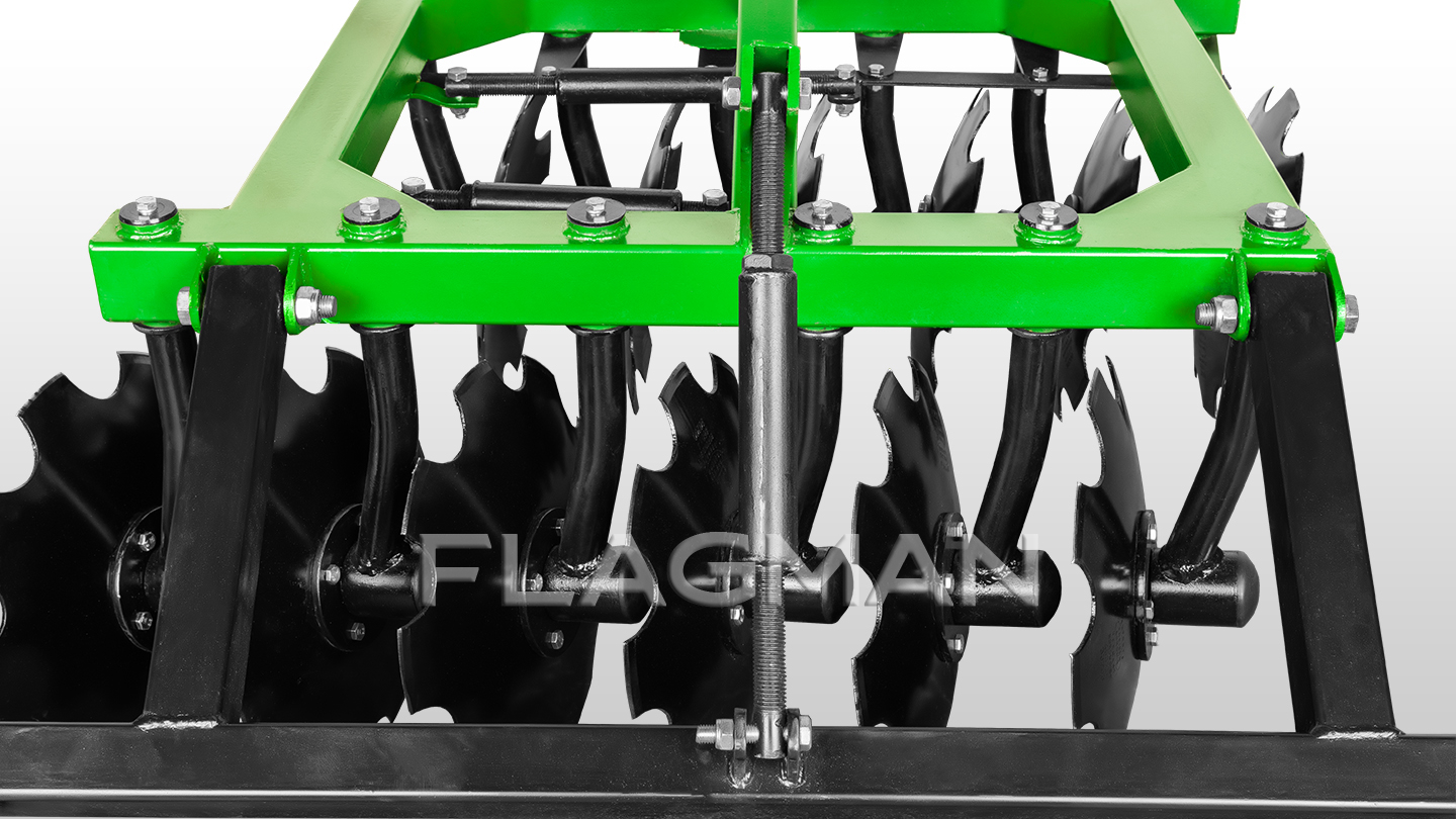 При совместном использовании бороны с катком, вы можете более точно настроить заглубление под каждый тип почвы. Каток имеет три точки крепления, что позволяет при помощи верхнего регулировочного винта изменять положение относительно бороны.