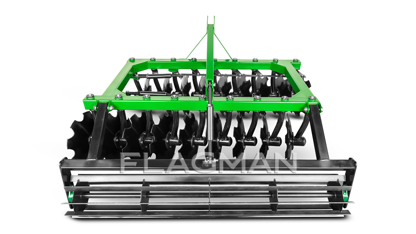 При совместном использовании бороны с катком, вы можете более точно настроить заглубление под каждый тип почвы. Каток имеет три точки крепления, что позволяет при помощи верхнего регулировочного винта изменять положение относительно бороны.