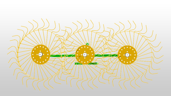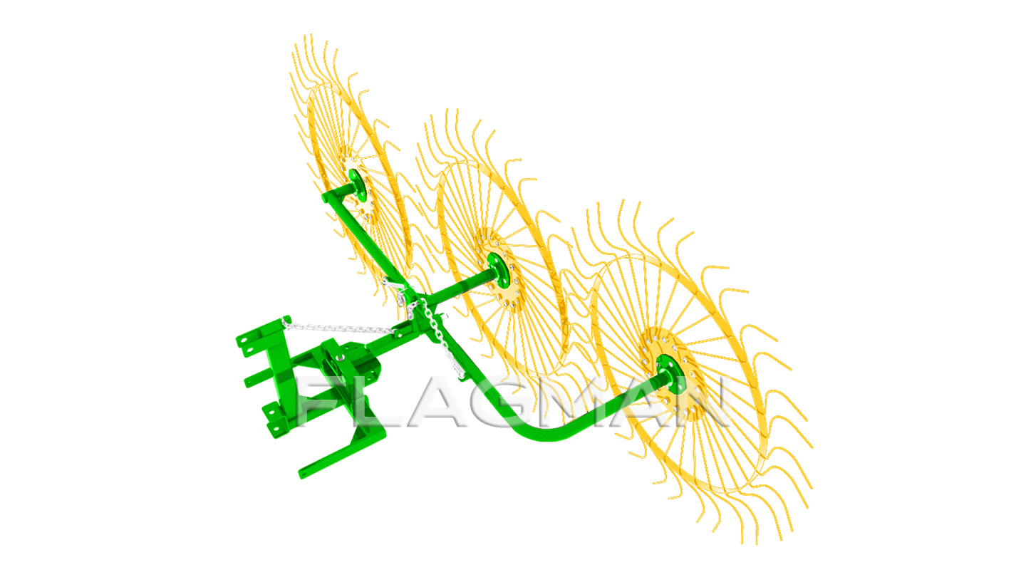 Грабли-сеноворошилки Flagman RR-03 используются для уборки и ворошения сеяных трав и естественных сенокосов урожайностью выше 15 ц/га, влажностью убираемой массы от 25% до 80%. Предназначены для работы на ровных участках, а также в районах с трудным доступом к сенокосным угодьям. Для работы не требуется ВОМ. При движении трактора грабли сцепляются с почвой и начинают синхронно вращаться.