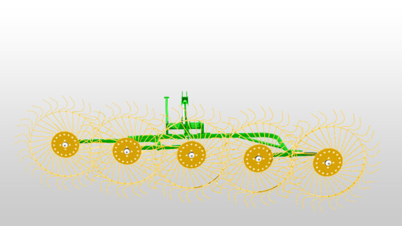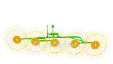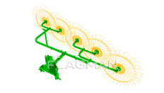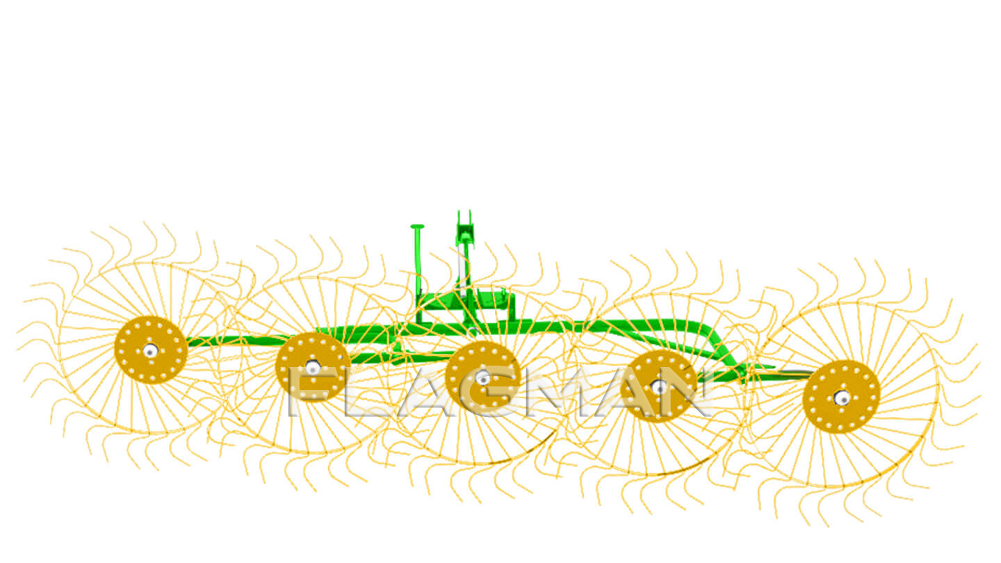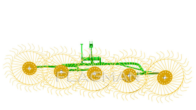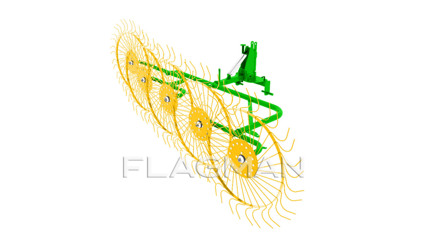 Грабли-сеноворошилки Flagman RR-05 используются для уборки и ворошения сеяных трав и естественных сенокосов урожайностью выше 15 ц/га, влажностью убираемой массы от 25% до 80%. Предназначены для работы на ровных участках, а также в районах с трудным доступом к сенокосным угодьям. Для работы не требуется ВОМ. При движении трактора грабли сцепляются с почвой и начинают синхронно вращаться.