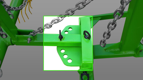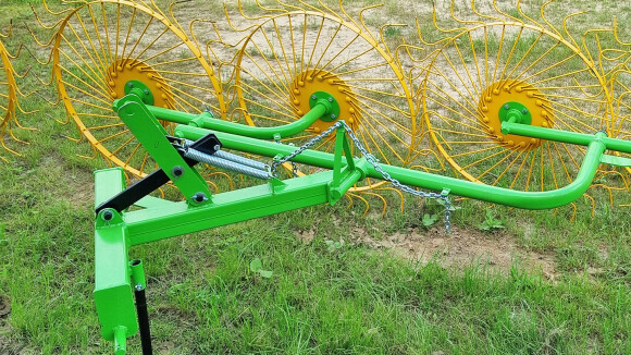 Грабли оснащены стандартной сцепкой под трехточечную навеску трактора. Чтобы увеличить универсальность, пальцы под крепление соединительных тяг имеют два размера: 22 мм и 28 мм. Тем самым грабли подходят к большинству тракторов как Китайского, Индийского производства, так и к тракторам производства стран ЕАЭС.