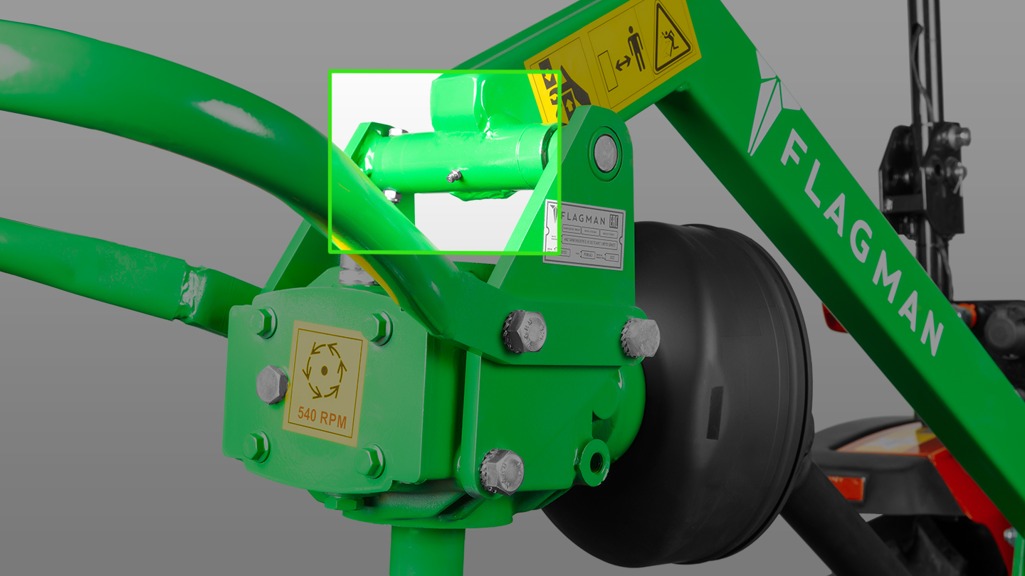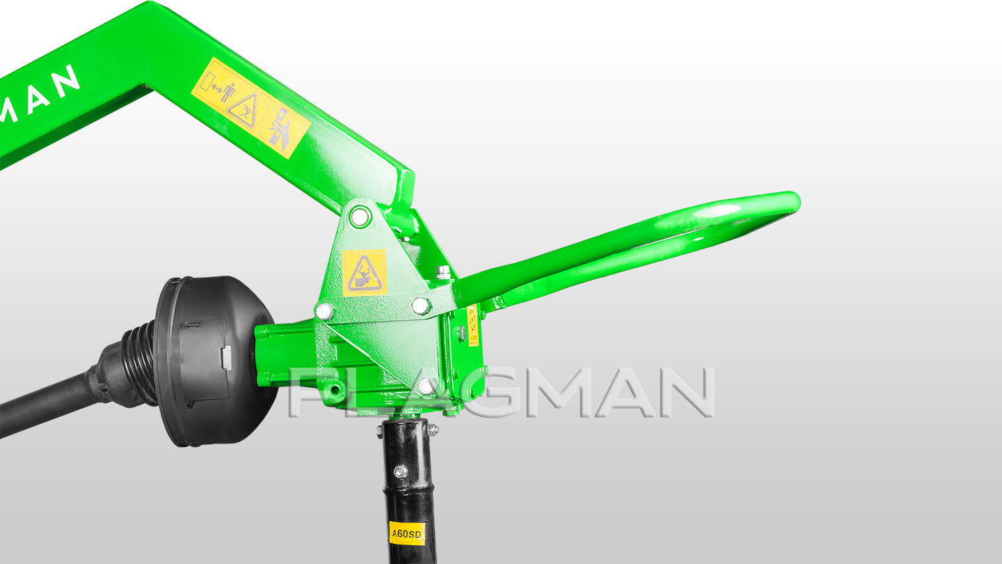 Трехточечная система навески надежно крепит агрегат на тракторе. Несущее плечо рамы изготовлено из толстостенного металлического профиля, сама рама шарнирно закрепляется вместо верхней тяги навески, что позволяет уменьшить количество соединений и увеличить общую жесткость конструкции.