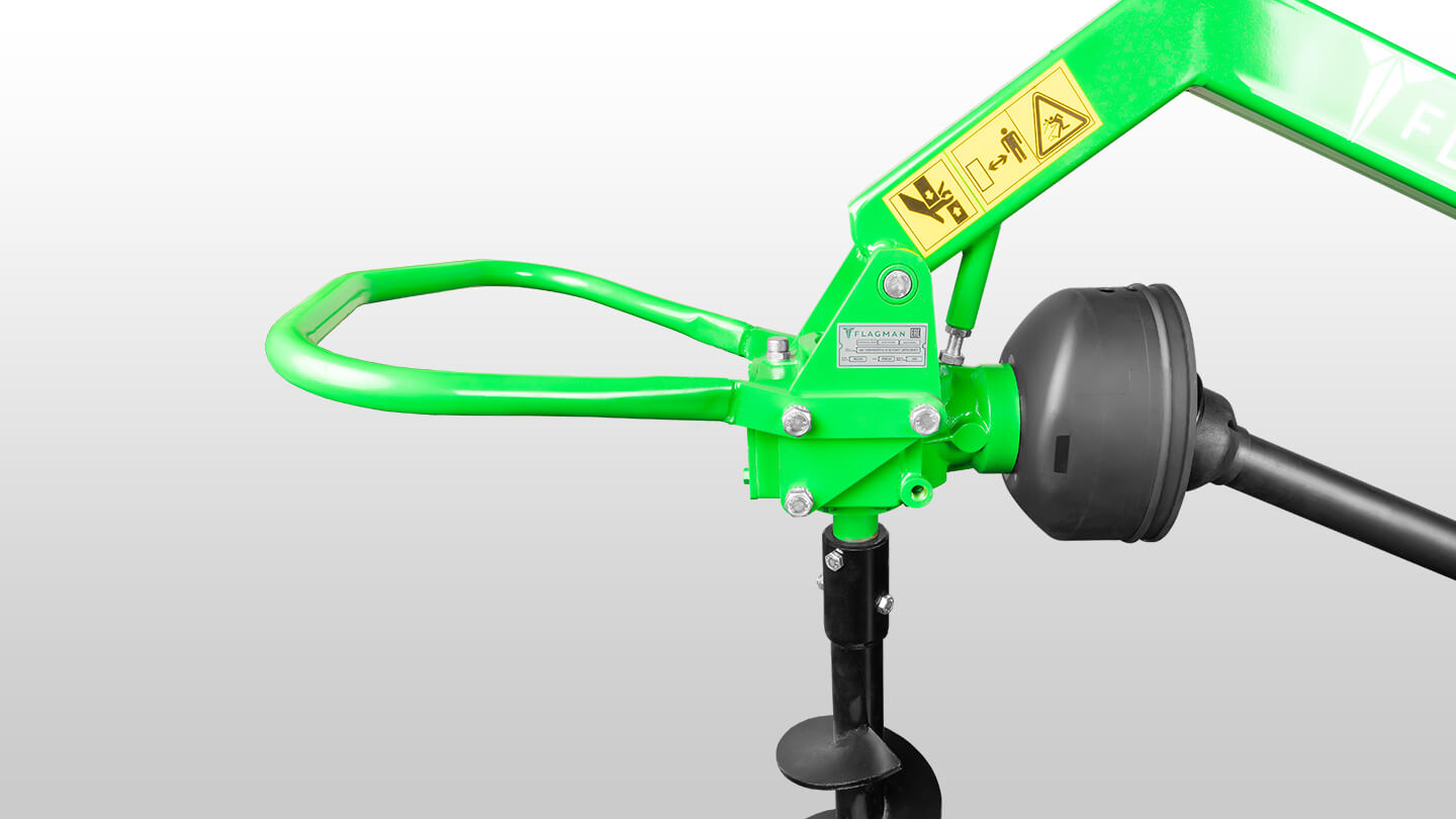 Подвижные соединения агрегата оснащены пресс масленками, масло в редукторе проверяется и меняется через соответствующие пробки. Все узлы ямобура покрыты порошковой краской, обеспечивая легкую очистку от загрязнений.
