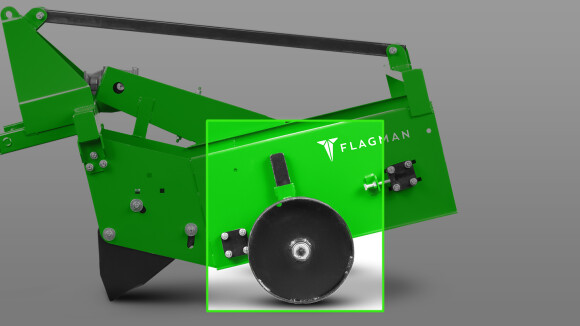 Глубину обработки можно настраивать с помощью транспортировочных колес и центрального винта навески, что позволяет регулировать заглубление до 25 см. Это обеспечивает эффективную работу даже при глубокой посадке картофеля, а также равномерное заглубление на различных почвах.