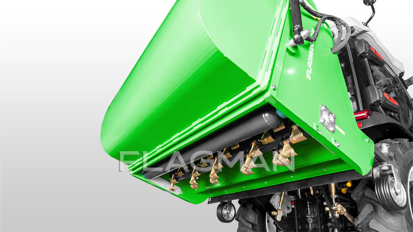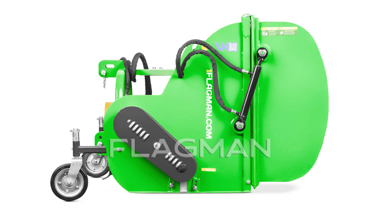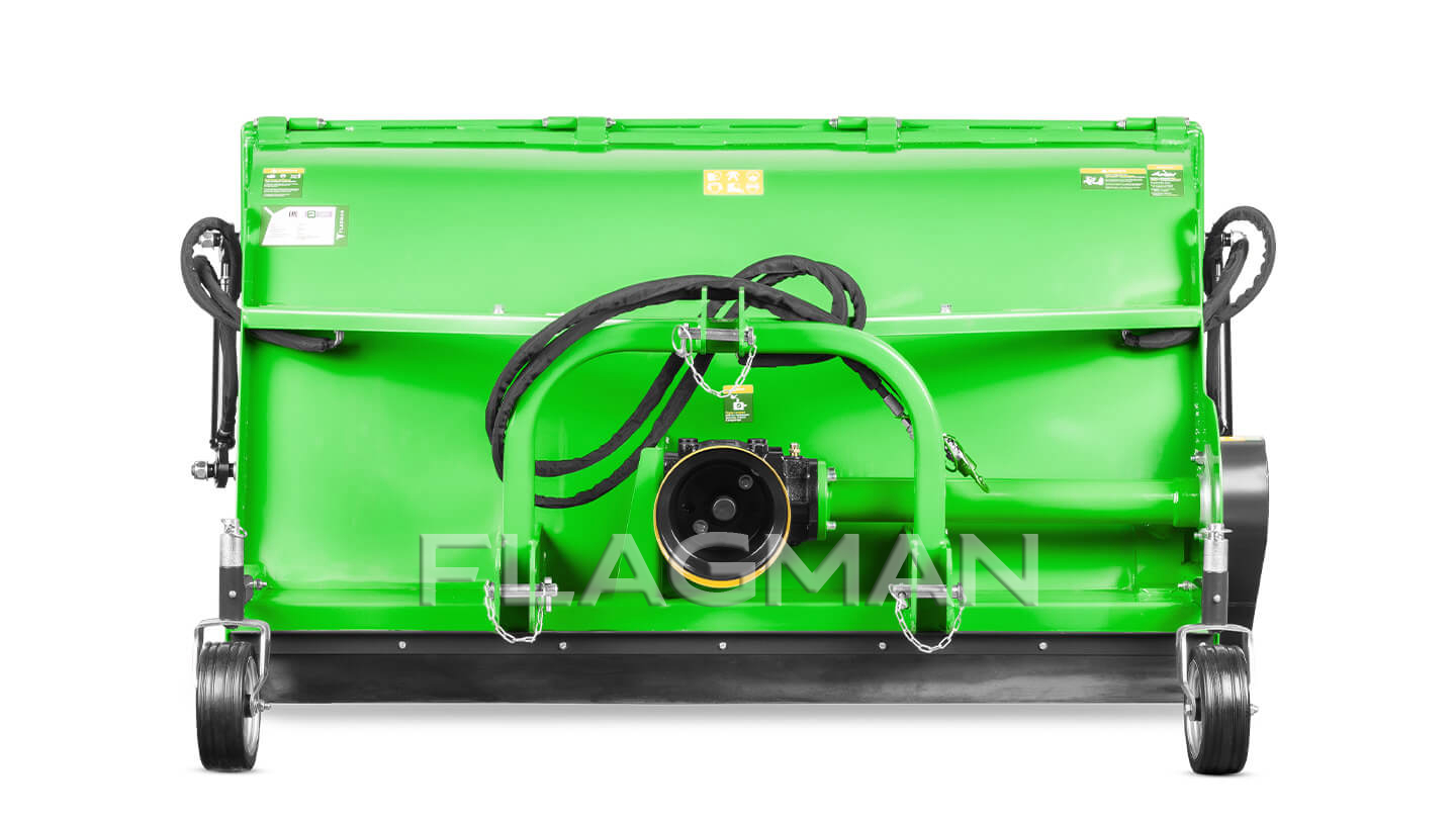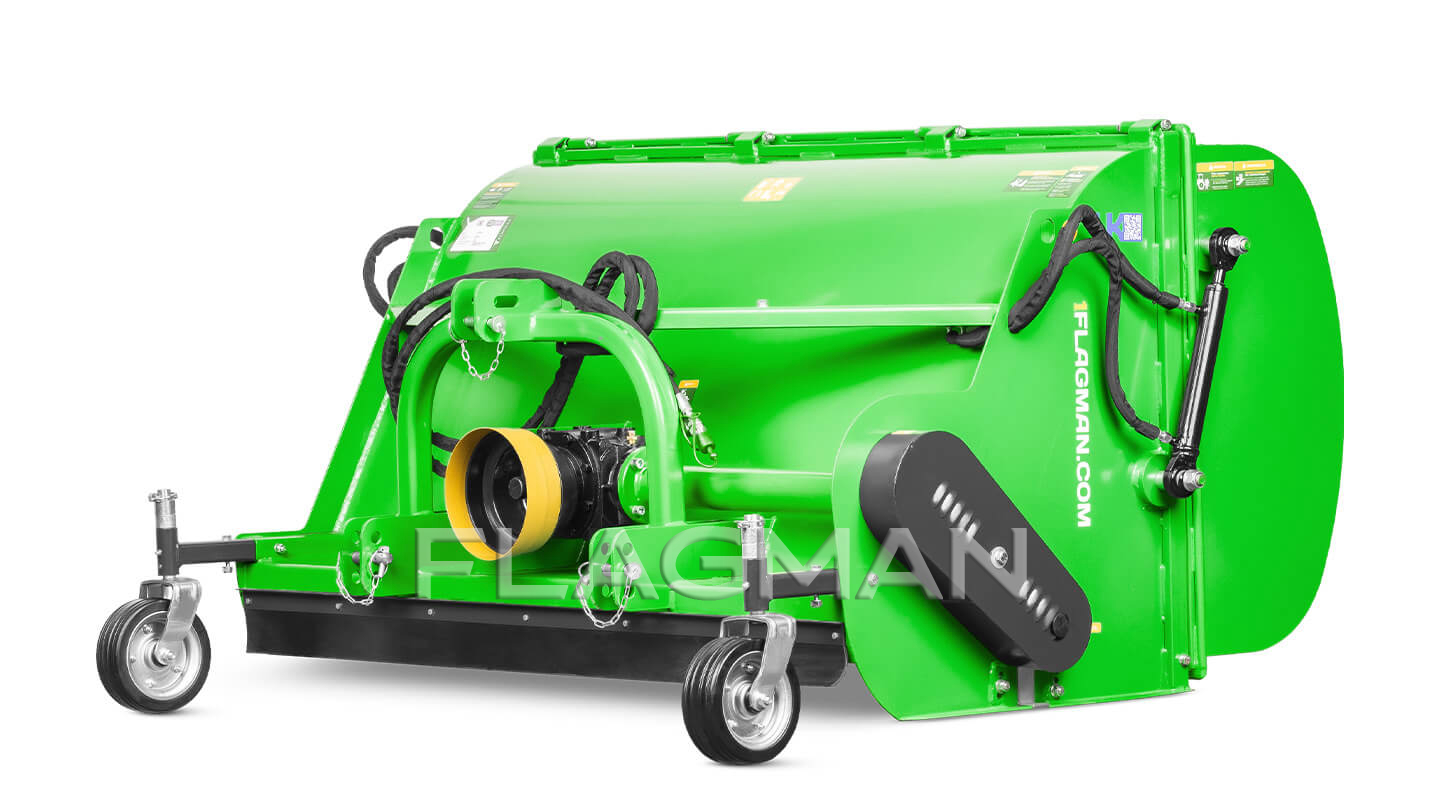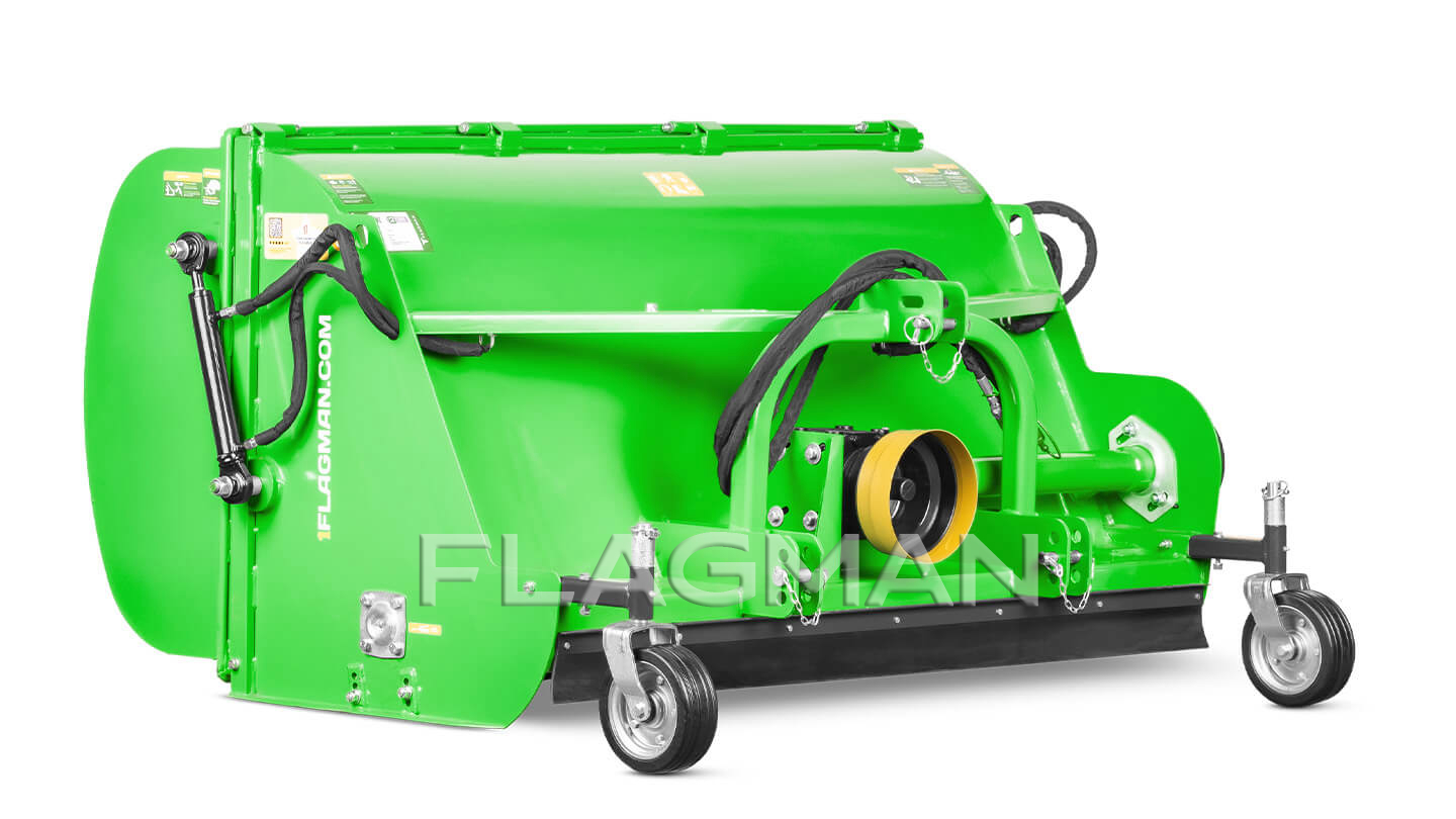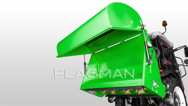 Косилка-измельчитель Флагман MG одновременно скашивает, измельчает и собирает траву и листву. Молотковый ротор выбивает массу из дернины, воздушный поток подаёт её в бункер, а задний каток выравнивает и прикатывает поверхность. Машина рассчитана на регулярный уход за парками, газонами, конными и спортивными площадками, придорожными полосами и агрегатируется с тракторами мощностью от 20 л. с.