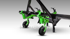 Ширину междурядья можно устанавливать в диапазоне от 62,5 до 75,0 см. Нужная ширина фиксируется за счет крепежных элементов, соединяющих раму и 3 секции.