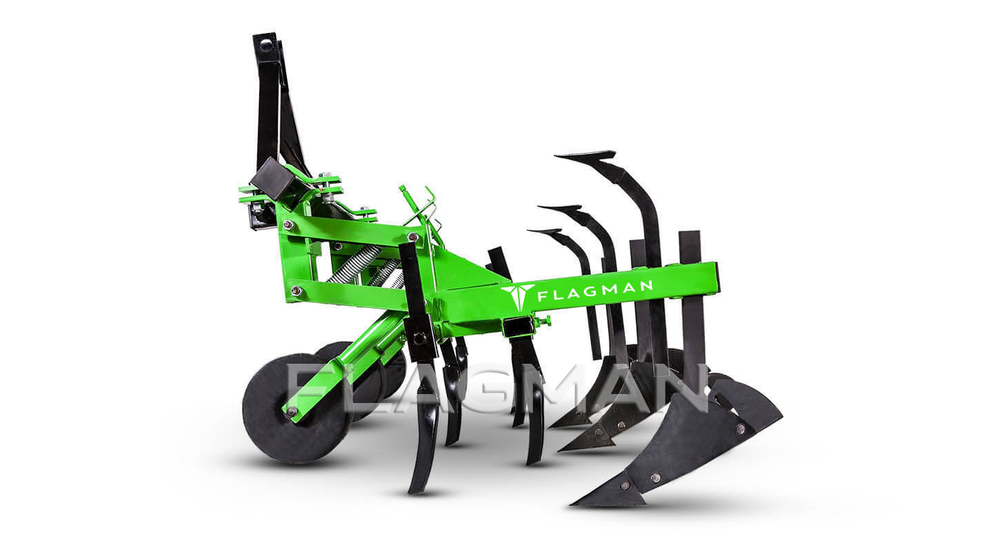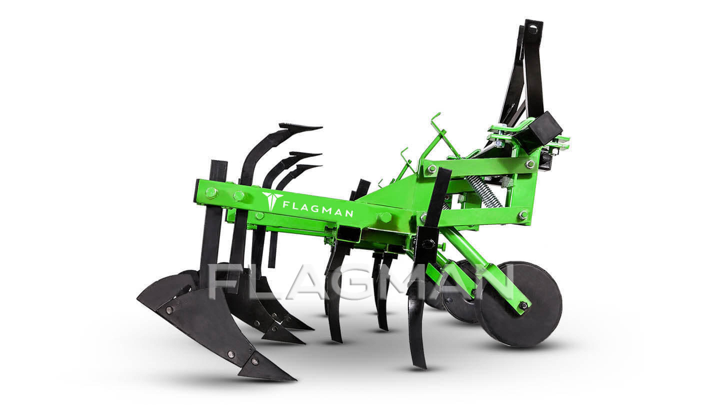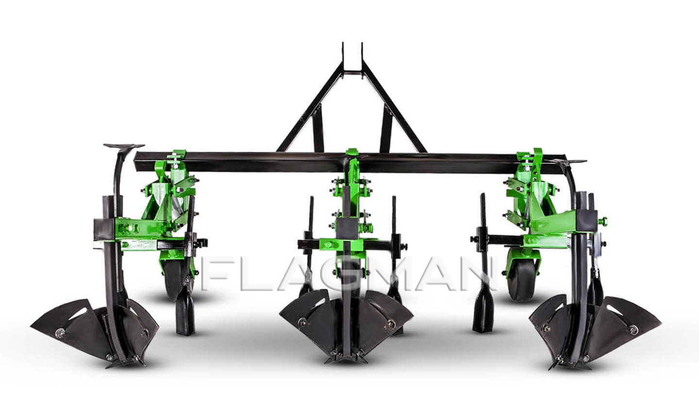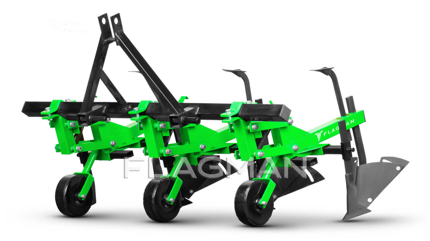 Трехкорпусный окучник-пропольник Flagman предназначен для окучивания культур, прополки и рыхления междурядий. Агрегатируется к тракторам со стандартной трехточечной системой навески, мощностью от 24 лошадиных сил.