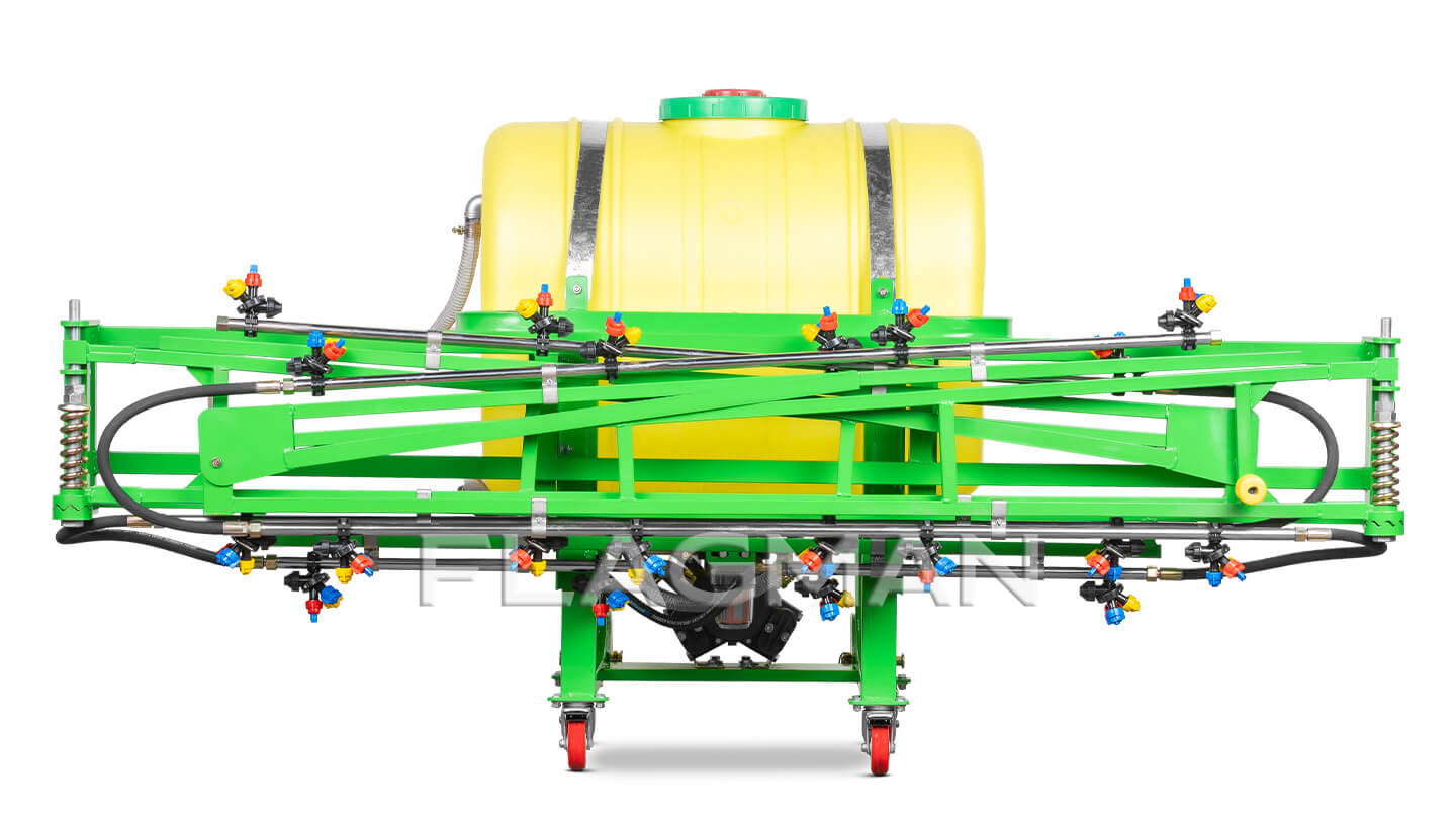 Полевые навесные штанговые опрыскиватели Flagman предназначены для внесения средств защиты растений и жидких удобрений по полевым культурам с равномерным распределением по ширине обработки. Агрегатируются с трактором на заднюю 3-точечную навеску, привод рабочих органов — от ВОМ 540 об/мин. Штанга 10 м с 20 распылителями обеспечивает стабильную норму внесения и производительность при обработке участков различной конфигурации.