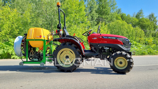 Опрыскиватель монтируется на заднюю трехточечную навеску трактора при помощи прицепных пальцев. Для увеличения перечня возможных к использованию тракторов выполнены отверстия двух диаметров: 22 мм и 27 мм.