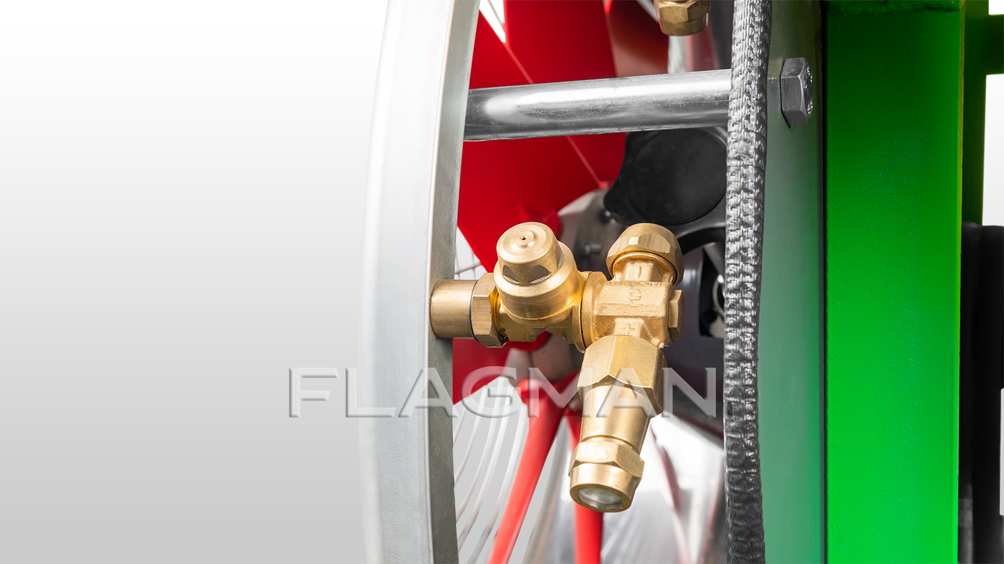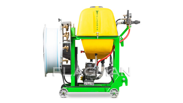 Модели Флагман могут быть оснащены комплектом для ручного опрыскивания. На корпусе закрепляется катушка со шлангом длиной 50 метров и пистолет-распылитель. Корпус пистолета-распылителя изготовлен из металла, ручка покрыта прочным пластиком. Скоба на ручке фиксирует рабочее положение пистолета.