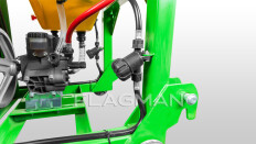 В верхней части над форсунками установлены два отражателя для более точного направления распыла химикатов. Отключение правой или левой секции форсунок позволяет сэкономить препараты при односторонней обработке.