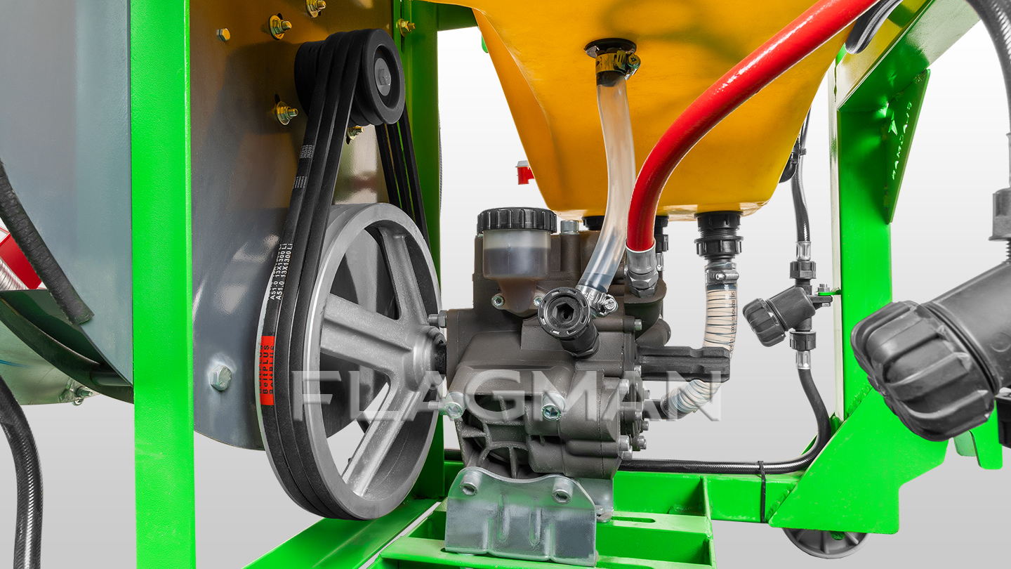 Опрыскиватели Флагман оснащены баком из толстостенного прочного пластика 1-1,5 см. Данный материал не подвержен воздействию реагентов и перепадов температуры. Прозрачный трубопровод и пронумерованная шкала в передней части бака позволяют оператору контролировать уровень заполнения емкости.