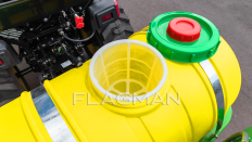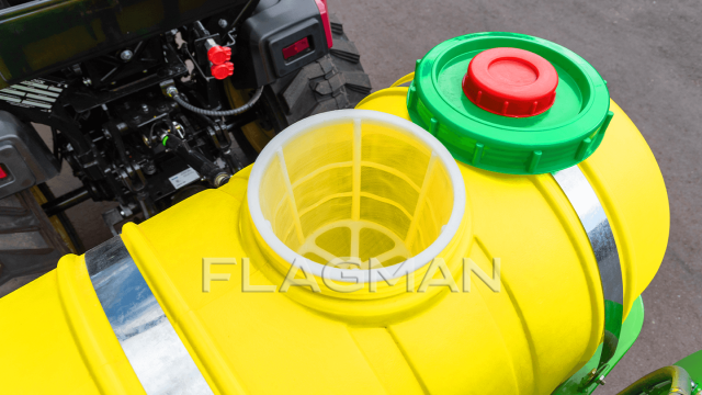 Полимерный резервуар толщиной 5 мм химически стоек, не корродирует и устойчив к ультрафиолету. Внутренняя поверхность гладкая: промывка проходит без отслоений и ржавчины, как это бывает у металла. Низкая масса бака уменьшает нагрузку на навеску и повышает устойчивость трактора на склонах виноградника.