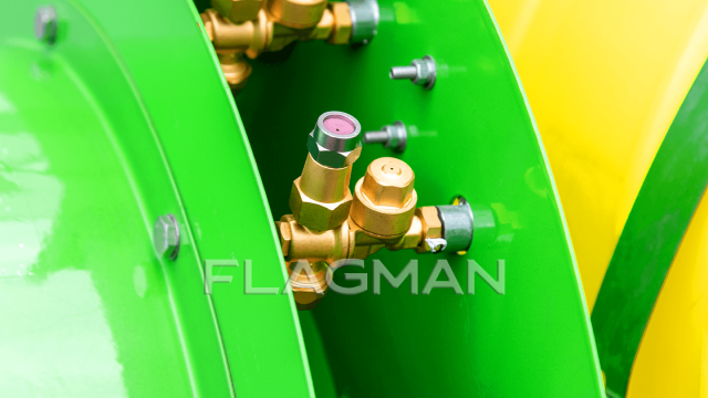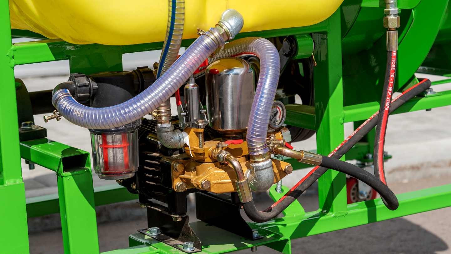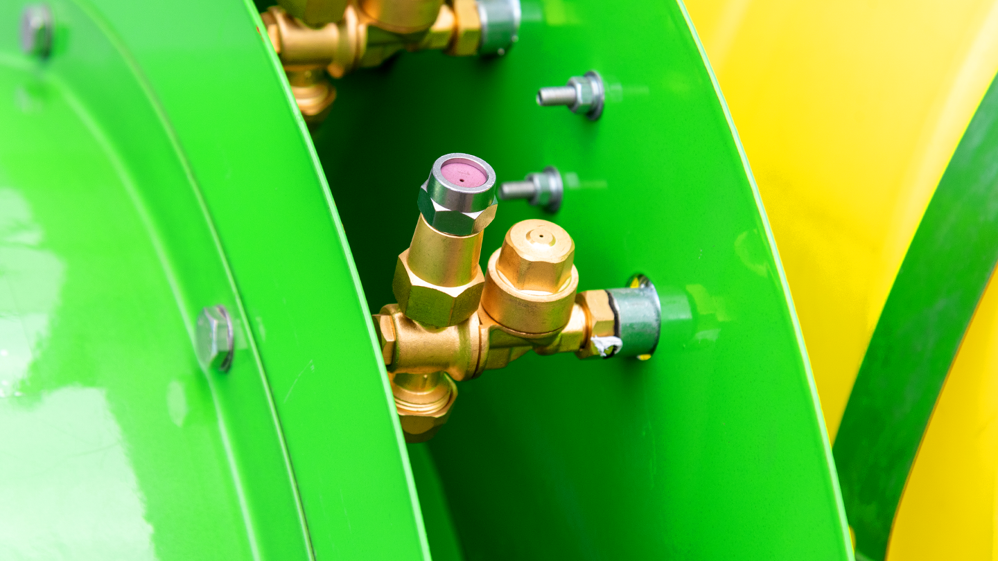 Центральный распределитель интегрирован в насос; он оснащен регулирующим клапаном и точным манометром. Контуры левой и правой стороны выключаются раздельно. Точная настройка давления и дозирование повышают эффективность обработки и исключают перерасход препарата.