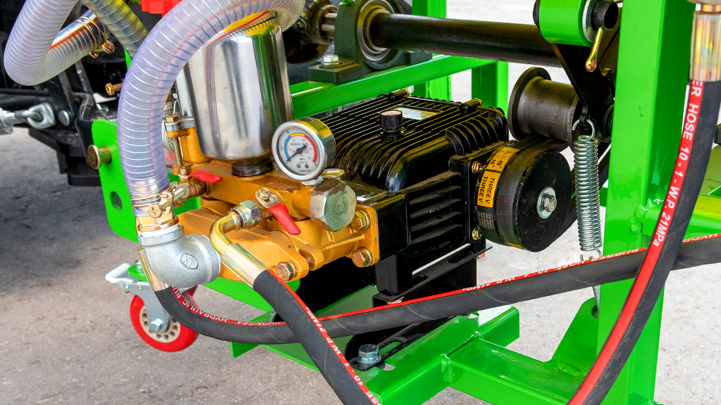 Плунжерная схема LIXIN с латунной головкой и керамическими плунжерами обеспечивает производительность 80–100 л/мин при 10–35 бар. В насос уже встроены манометр и регулирующий клапан. Керамические плунжеры износостойки, поддерживают стабильное давление и равномерную подачу на форсунки.