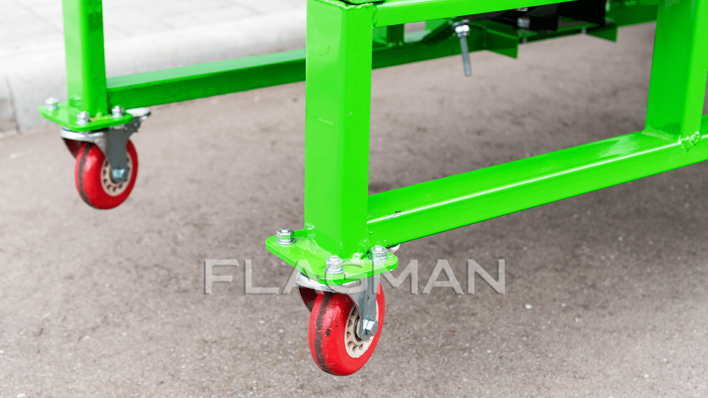 Металлоконструкция защищена износостойким порошковым слоем. Покрытие переносит влагу и мелкие удары при открытом хранении. Долговечность рамы сохраняется без дополнительной консервации.
