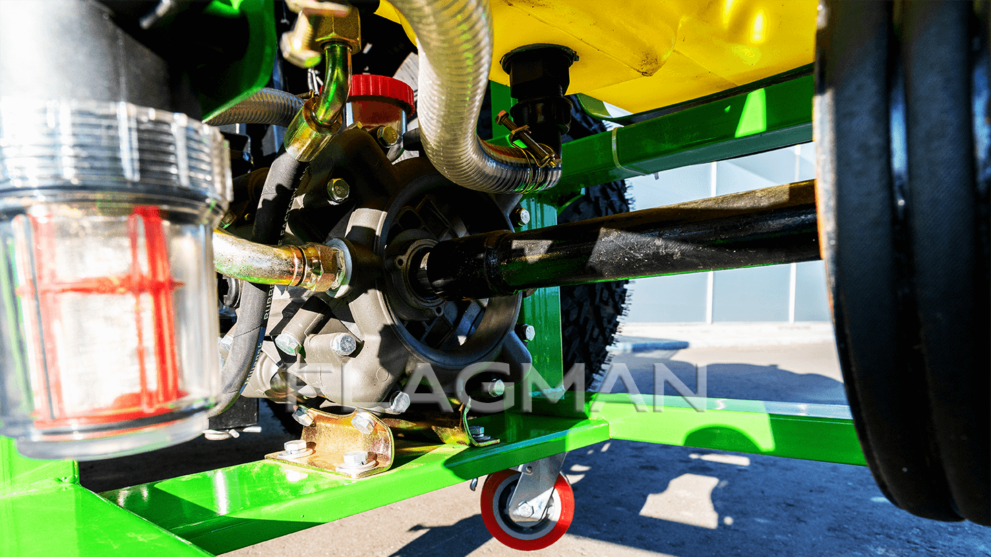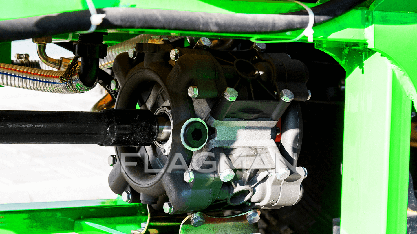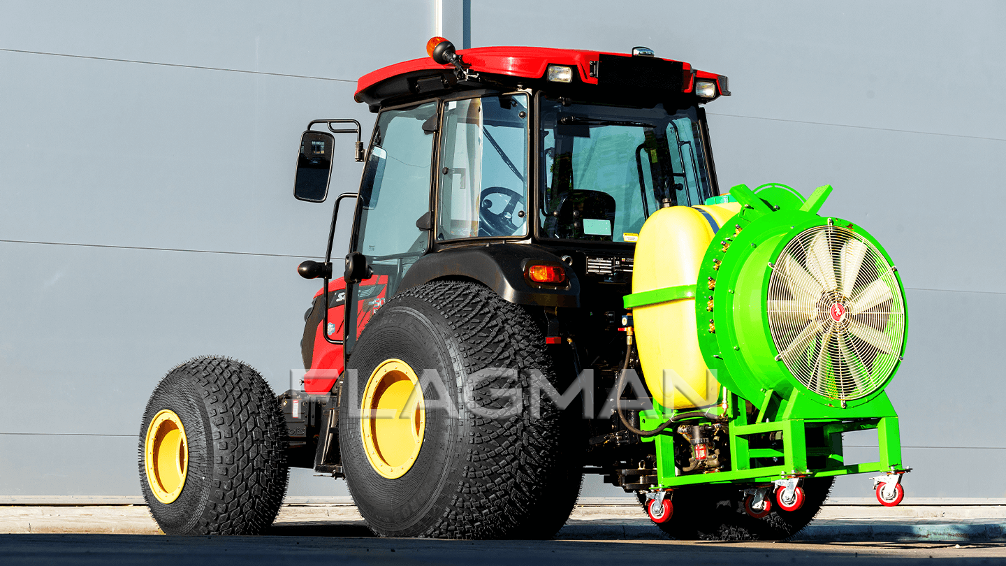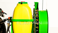 Опрыскиватель Flagman S400/1 ориентирован на интенсивные сады и виноградники с повышенными нормами расхода. Модель стыкуется с тракторами от 20 до 60 л. с. с ВОМ 540 об/мин и навеской 1/2 классов. Основные плюсы модели: высокая производительность мембранного насоса 80–100 л/мин при 10–35 бар, нейлоновый вентилятор 78 мм и 12 латунных форсунок с поворотной двойной головкой.