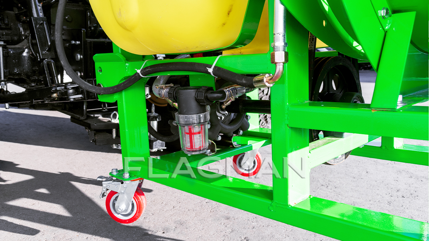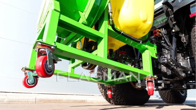 Наличие колес для транспортировки значительно упрощает перемещение опрыскивателя на рабочей площадке и комфортное соединение с трактором.
