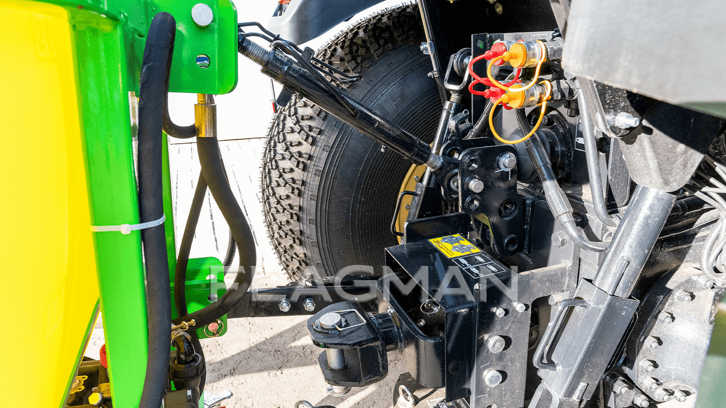 Два диаметра нижних проушин — 22 и 28 мм — перекрывают навески I и II классов без переходников. Соосность отверстий выдержана по стандарту трехточечной сцепки, фиксация пальцев — шплинтами. Унификация ускоряет агрегатирование и повышает применяемость опрыскивателя.