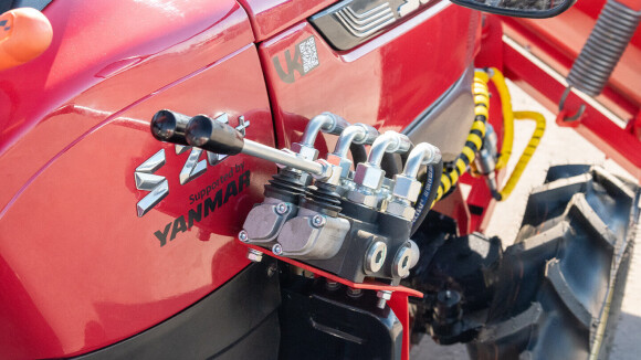 Поворот лопаты и подъём реализованы гидроцилиндрами и управляются 2-секционным распределителем (рычаги или джойстик) на отдельном кронштейне. Это разгружает штатную гидравлику по органам управления и делает работу отвала автономной: штатные гидровыходы остаются свободными для подключения другого оборудования.