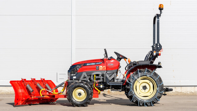 Отвал разработан под тракторы Solis 22/24/26 как переднее орудие для коммунальных работ. Ширина 1600 мм соответствует габаритам и тяговому классу этих машин: отвал перекрывает колею, проходит в узких проездах и дворовых зонах, не теряя манёвренности на разворотах и при работе в стеснённых условиях. Основные задачи — расчистка свежевыпавшего и уплотнённого снега, сдвиг снежной массы к краю полотна и формирование валов.
