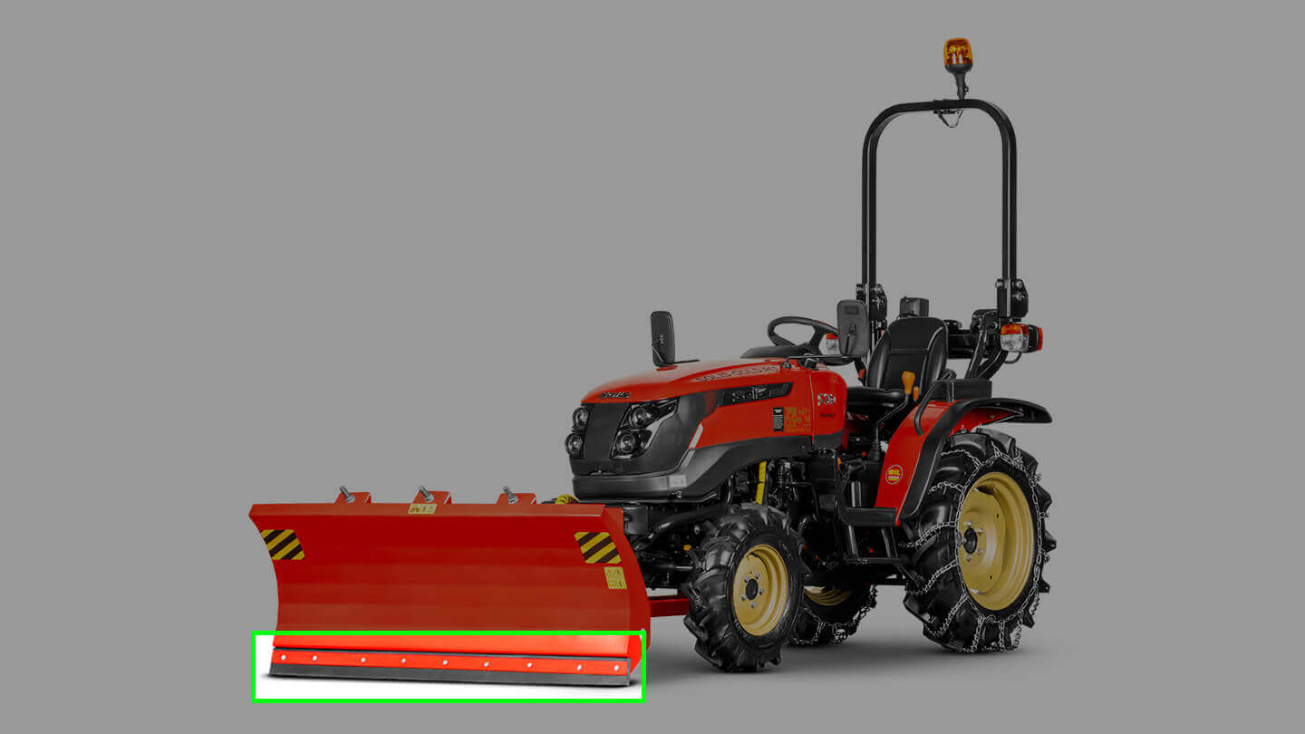 Нижняя кромка оснащена съёмной резиновой лентой 18 мм. Толщина даёт устойчивый прижим без агрессивного контакта с асфальтом/плиткой, исключая повреждения покрытия. Резина компенсирует мелкие перепады и стыки, уменьшая удары на рамку и вибрацию на трактор. Отвал подходит для регулярной очистки дворов и тротуаров без повреждения покрытия.