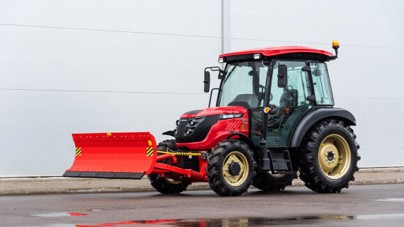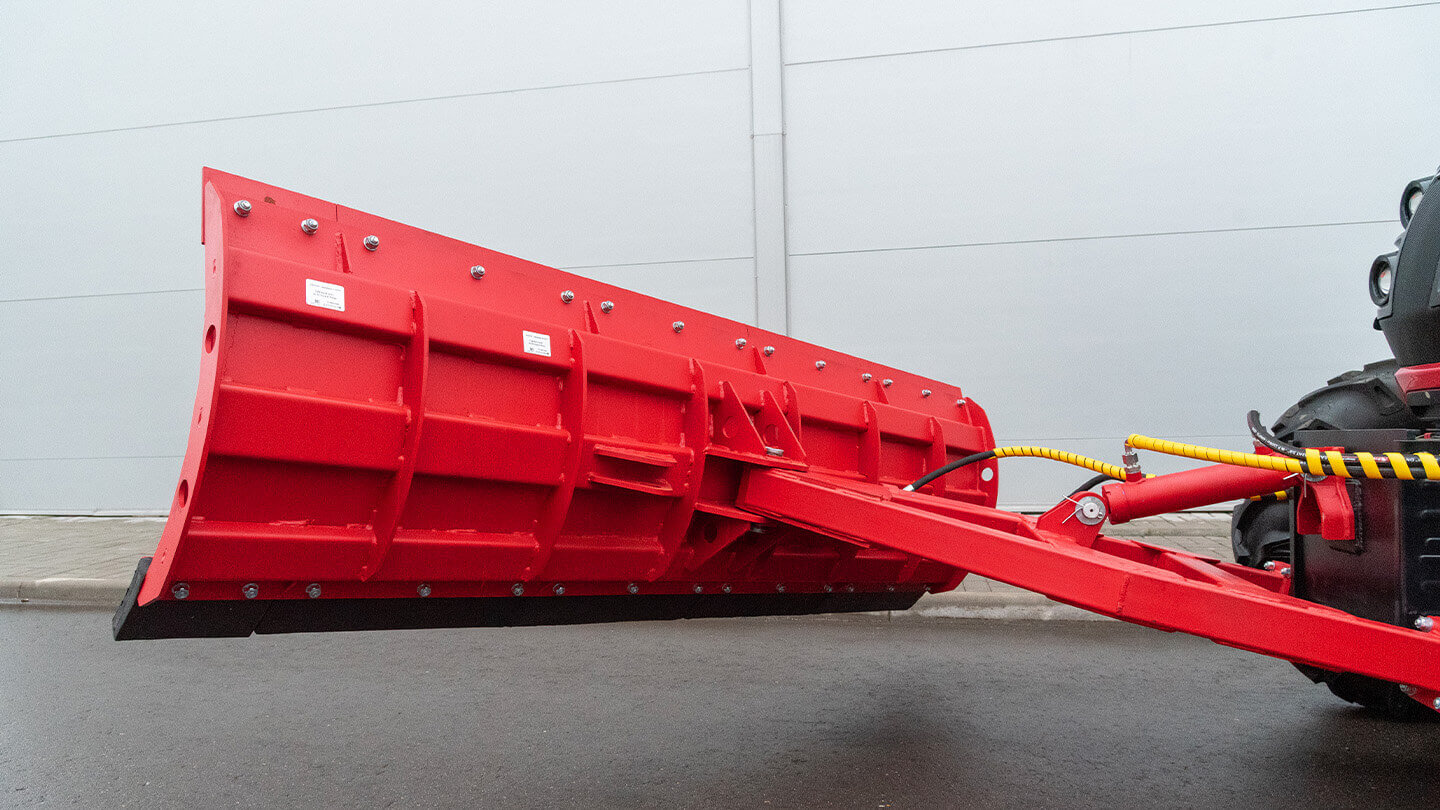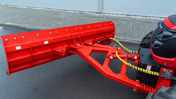 Поворот лопаты реализован гидравлически, с отклонением на 30° влево и вправо. При уборке снега это упрощает формирование вала в нужную сторону, а на площадках помогает «подрезать» кромку вдоль борта или ограждения без лишних манёвров. Управление через штатный распределитель трактора сохраняет привычную логику работы гидравлики.