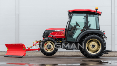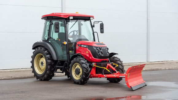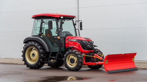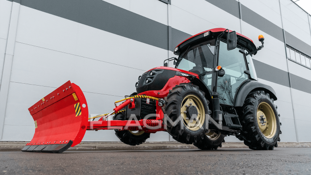 Диапазон подъёма/опускания лопаты — от −35 до +50 см: кромку проще вести по неровному покрытию, отвал удобнее поднимать на переездах и проходить участки с перепадами. На разворотах и перемещениях подстройка высоты снижает вероятность зацепить кромкой плитку, люки или край асфальта. При работе в комплексе с экскаватором отвал используют как третью опору, вывешивая передний мост.