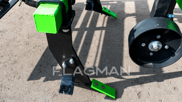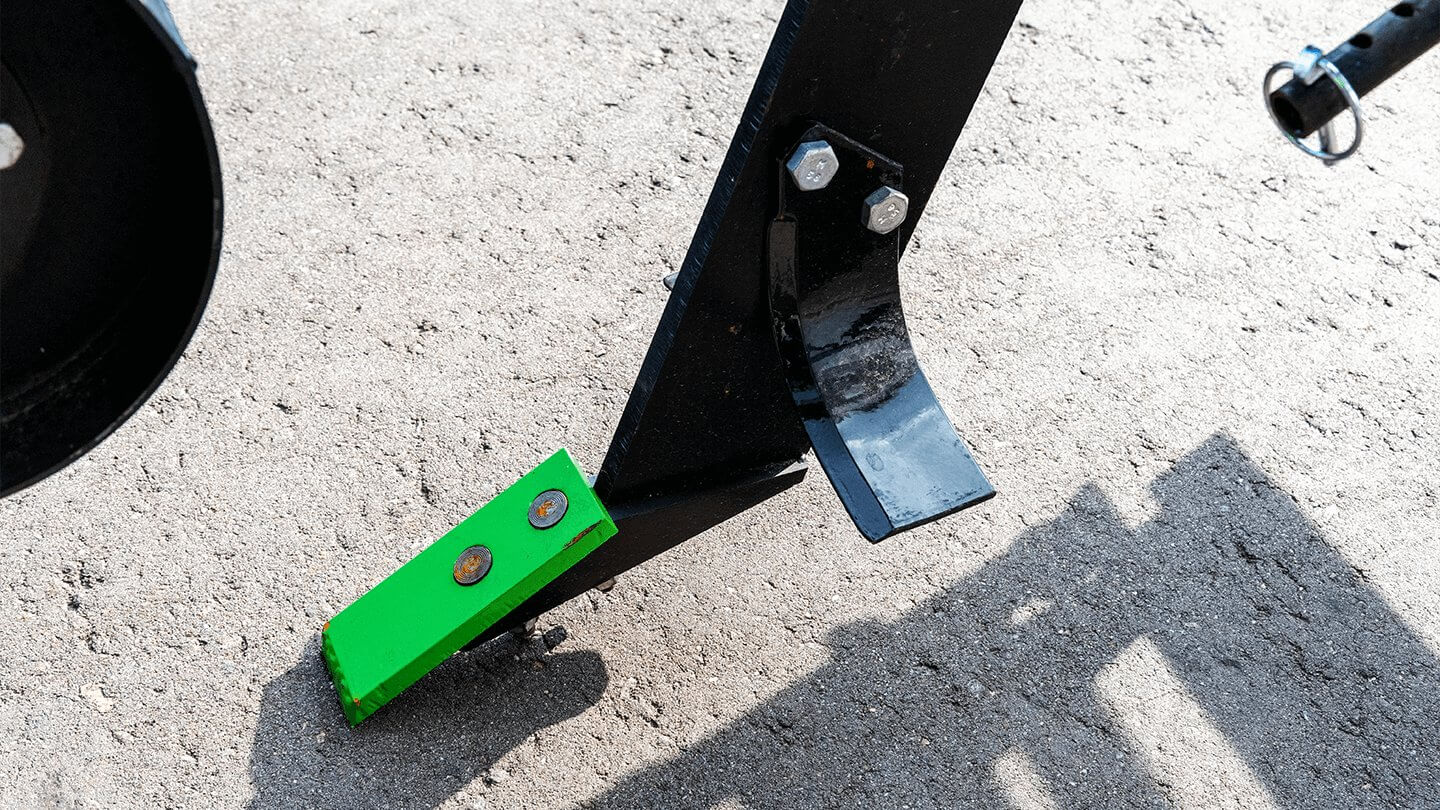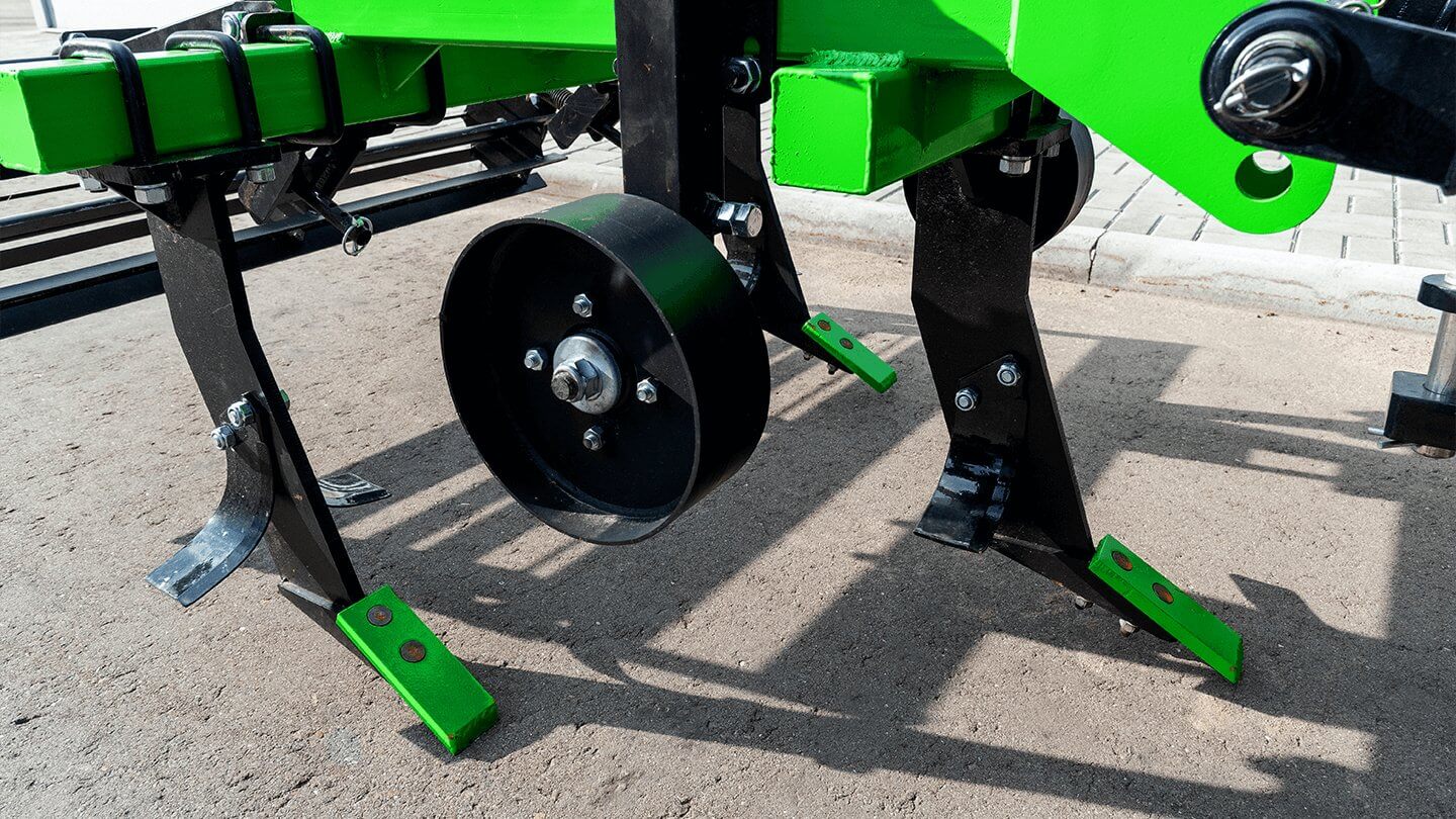Два цельнометаллических передних колеса удерживают рабочие органы в заданном горизонте, сводя отклонения по глубине к минимуму даже при прохождении трактором гребней и борозд. Кронштейны с болтовой фиксацией позволяют за пару минут изменить положение каждого колеса, настраивая глубину рыхления под конкретный тип почвы. Пылезащищенные подшипники закрытого типа рассчитаны на многолетнюю работу без регулярной смазки.