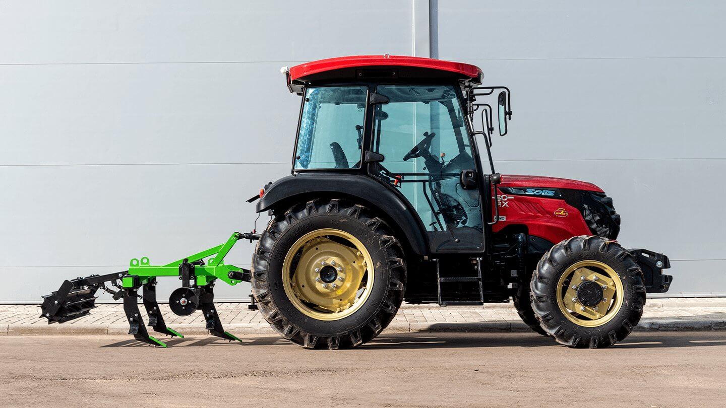 Крепёжные стремянки на несущей балке позволяют свободно перемещать рабочие стойки вдоль рамы, варьируя их количество и межстоечное расстояние до 50 см в зависимости от типа почвы и мощности трактора. На мягком фоне при работе одной стойкой достаточно тяги в 24 л. с.; полная трехстоечная конфигурация требует мощности от 50 л. с.