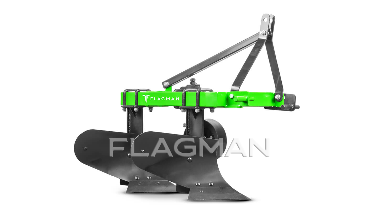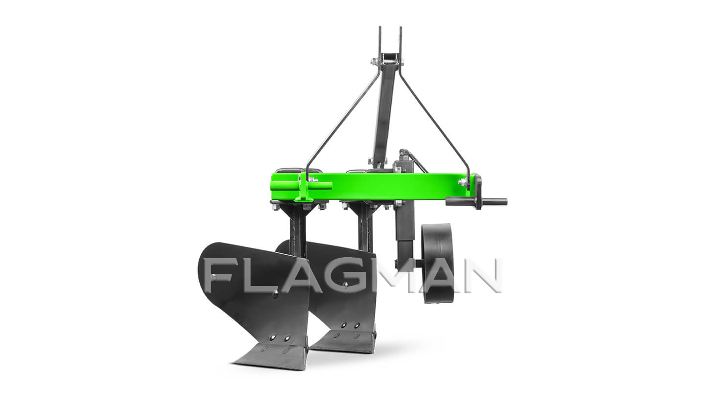 Система навески плуга Flagman предусматривает регулировку его положения относительно навески трактора. Пальцы для нижних тяг расположены на разной высоте, что компенсирует наклон трактора, снижая количество необходимых регулировок и упрощая эксплуатацию плуга.