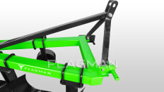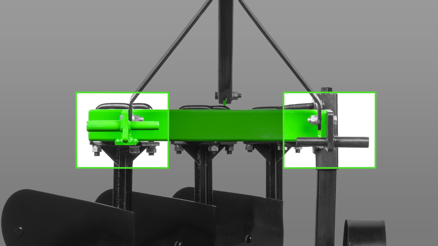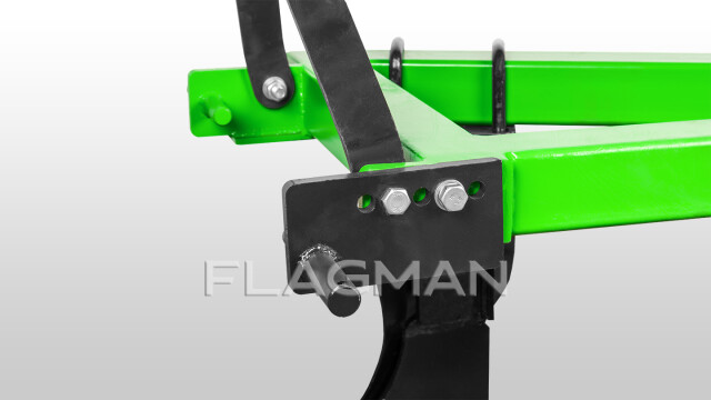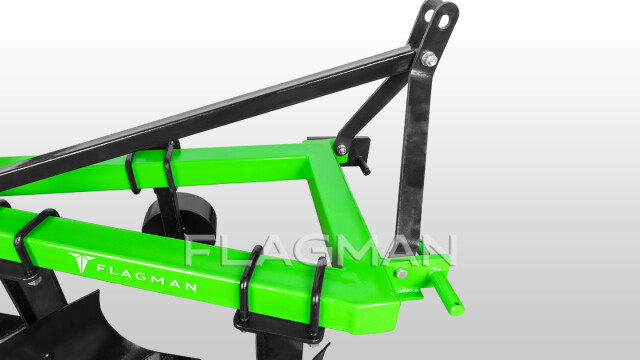 Система навески плуга Flagman предусматривает регулировку его положения относительно навески трактора. Пальцы для нижних тяг расположены на разной высоте, что компенсирует наклон трактора, снижая количество необходимых регулировок и упрощая эксплуатацию плуга.