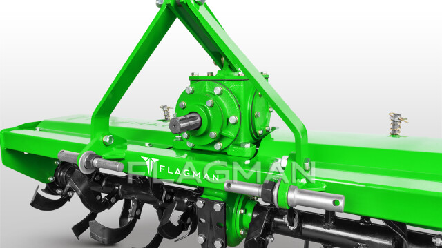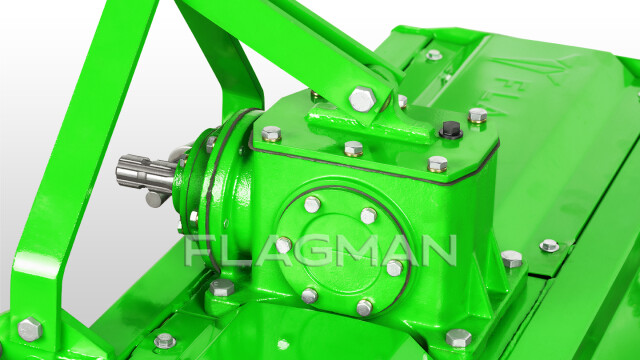 Flagman EKO оснащена усиленным шестеренчатым редуктором. Он визуально больше в сравнение с аналогичными конкурентами, отличается повышенной надежностью благодаря прочному корпусу толщиной 10 мм, мощным шестерням и креплению к раме посредством 8 болтов М18. Особое внимание уделено конической паре – её размеры в два раза превышают таковые в стандартных моделях.