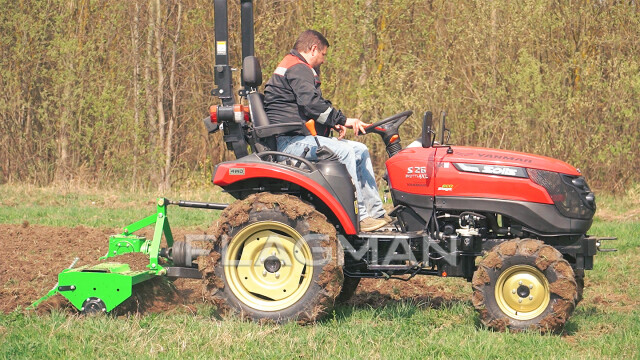 Глубина фрезерования может достигать 20 см и настраивается за счет положения навески трактора. Работать можно как в ручном режиме регулировки глубины, так и в плавающем режиме с полным заглублением, подстраиваясь под участки с разным рельефом. Перед редуктором установлен литой чугунный заглубитель, который обеспечивает стабильное и равномерное заглубление. Конструкция способствует лучшему проникновению инструмента в грунт, снижая вероятность образования «подскоков» и обеспечивая более ровное формирование профиля обработки.