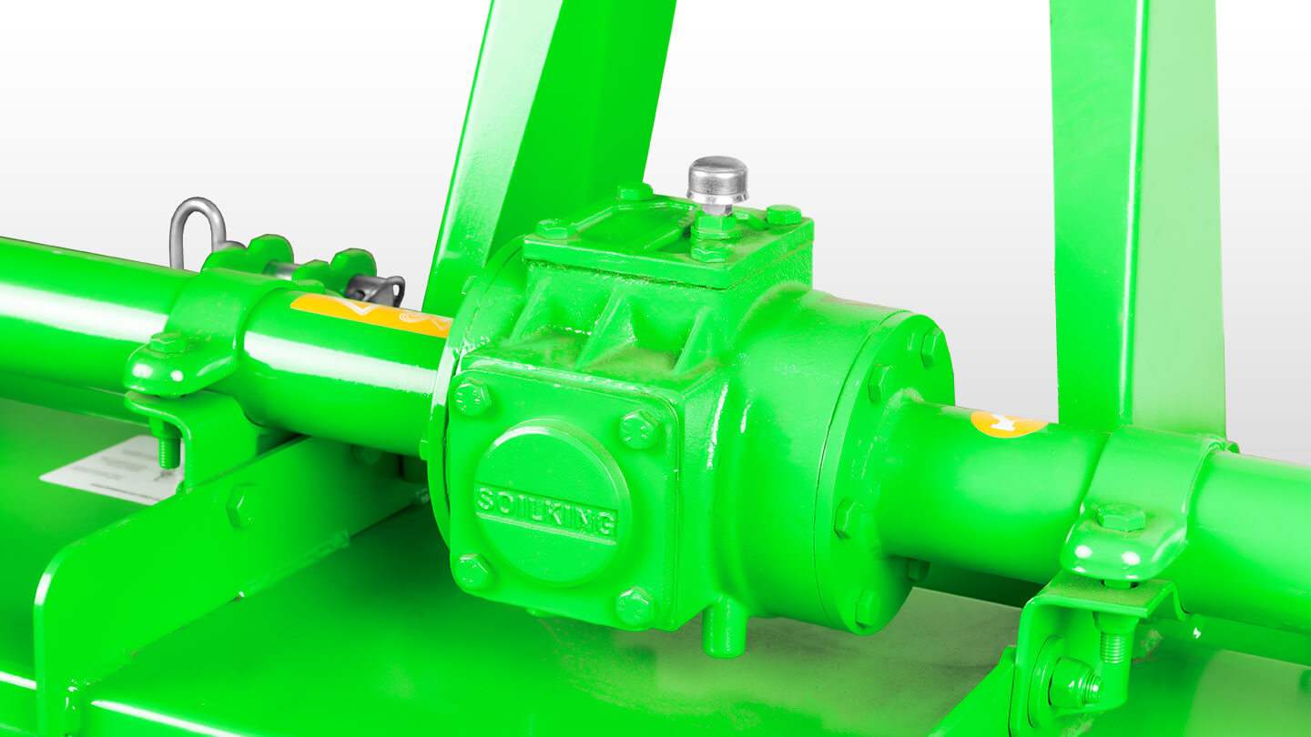 Почвофреза оснащена боковым приводом, который обеспечивает постоянную передачу мощности без потерь. Шестерни привода изготовлены из легированной стали с поверхностной закалкой, для дополнительной защиты от износа.