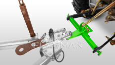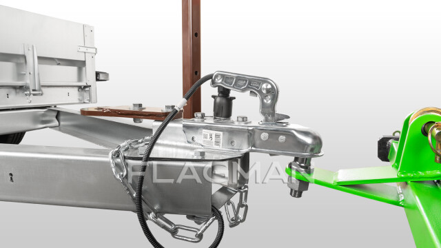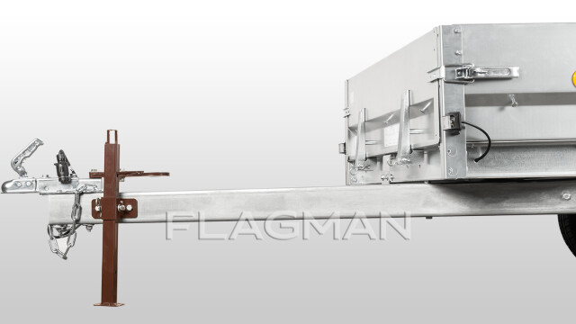 Прицеп Флагман предназначен для перевозки различных грузов. Он может использоваться как с тракторами мощностью от 15 л.с., так и с автомобилями. В комплект входит кронштейн под прицепную скобу трактора (диаметр отверстия 40 мм) и крепление европейского производства под фаркоп автомобиля, рассчитанное на нагрузку 1.7 тонны.