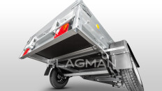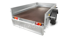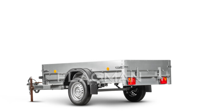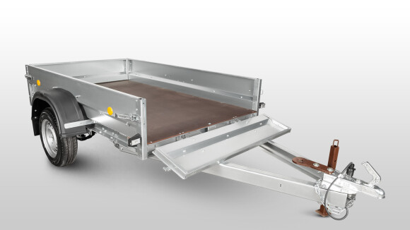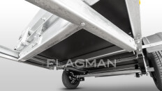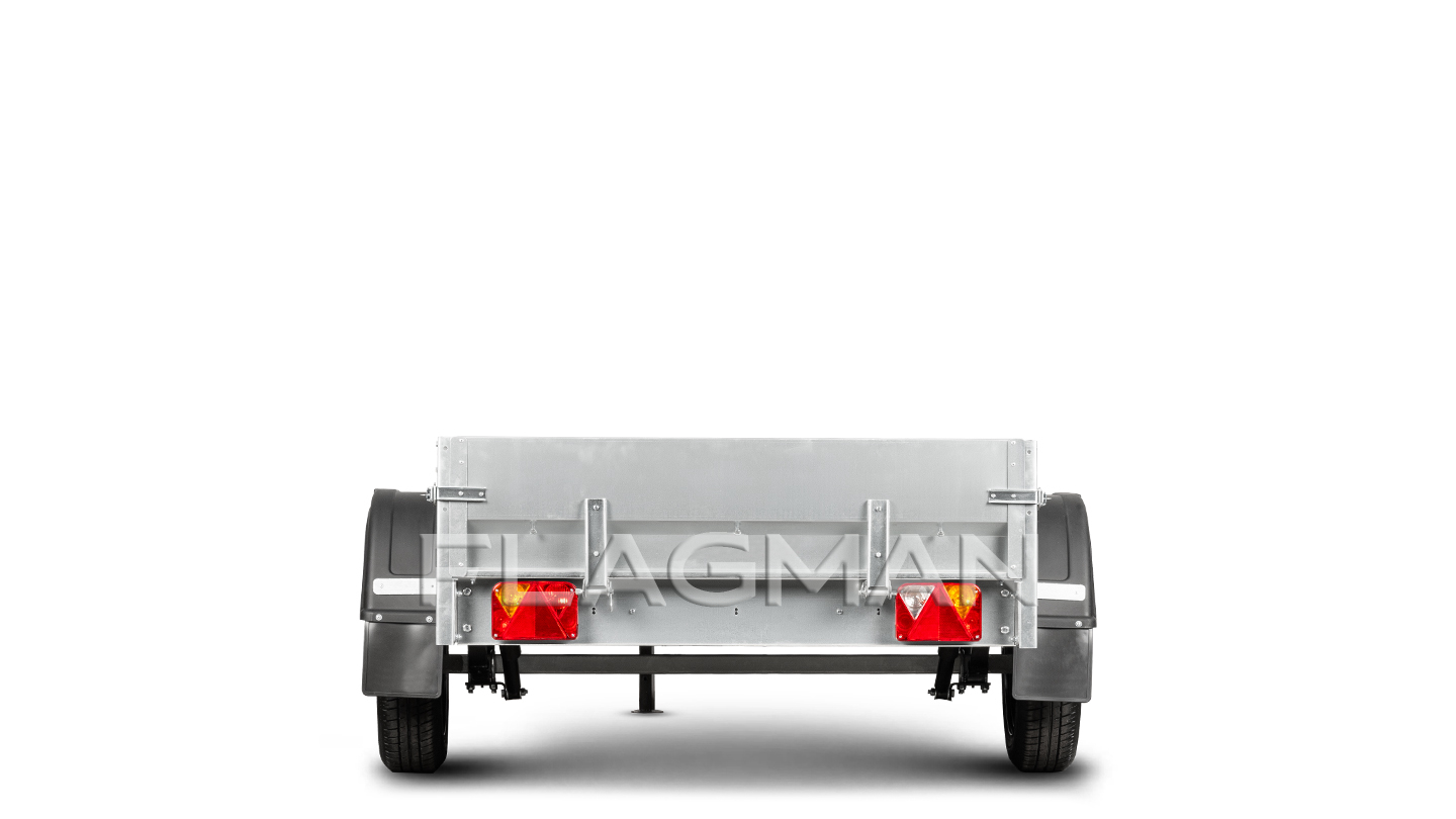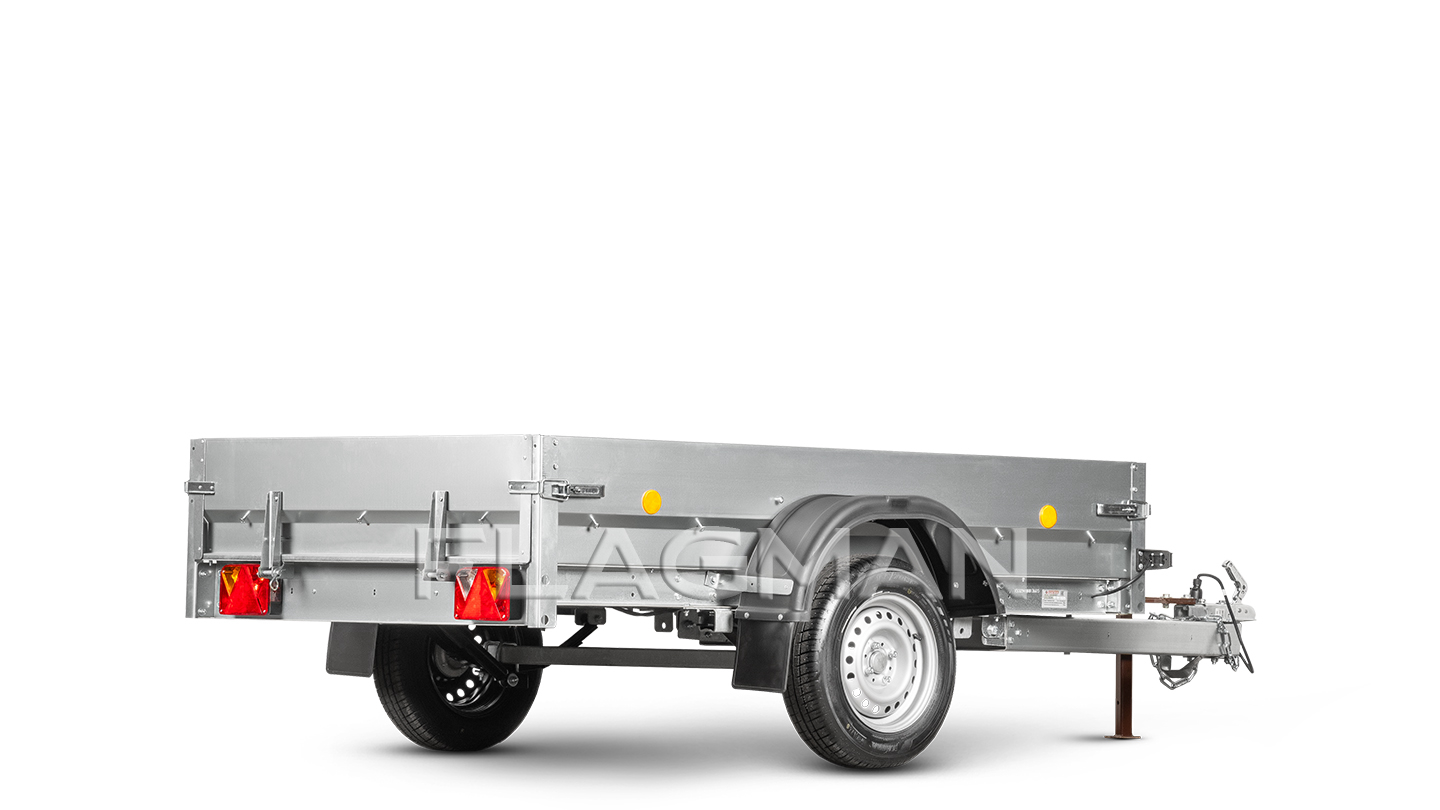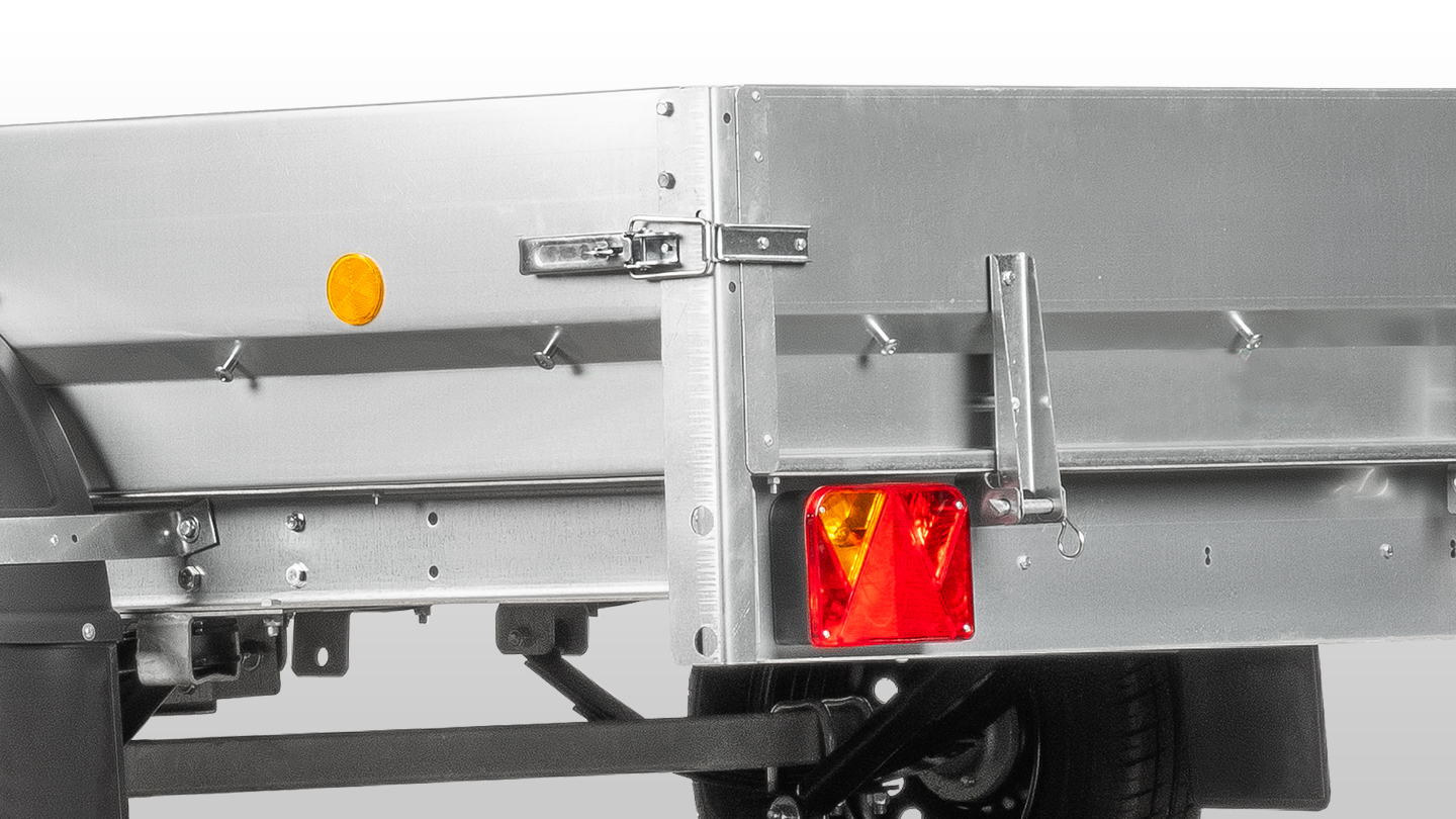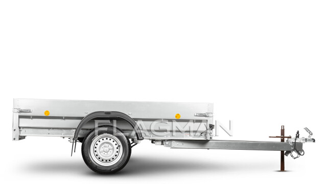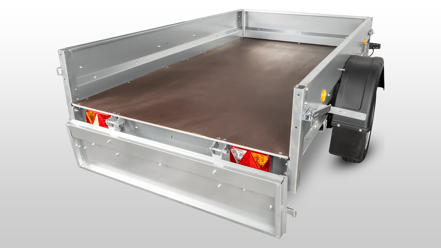 Задний и передний борта прицепа откидные, с возможностью полного отсоединения. Такое решение позволяет перевозить строительный материал и другой крупногабаритный груз. Замки крепления удобные для использования, механизм фиксации предохраняет от случайного открытия. Пол прицепа из ламинированной фанеры 9 мм, устойчивой к воздействию влаги и легких ударов при погрузке-разгрузке.