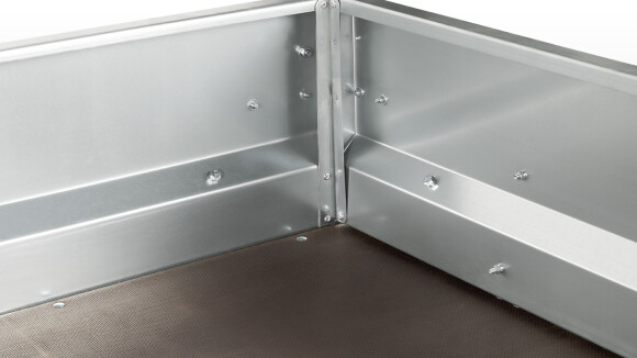 Шасси прицепа изготовлено из 3 миллиметрового профиля оцинкованного методом горячего цинкования, что защитит его от коррозии на долгие годы. Ровные сварные швы подтверждают высокую прочность и надежность конструкции, нагруженные места усилены косынками. Борта из предварительно оцинкованной стали 1.5 мм, надежно защищены от коррозии.