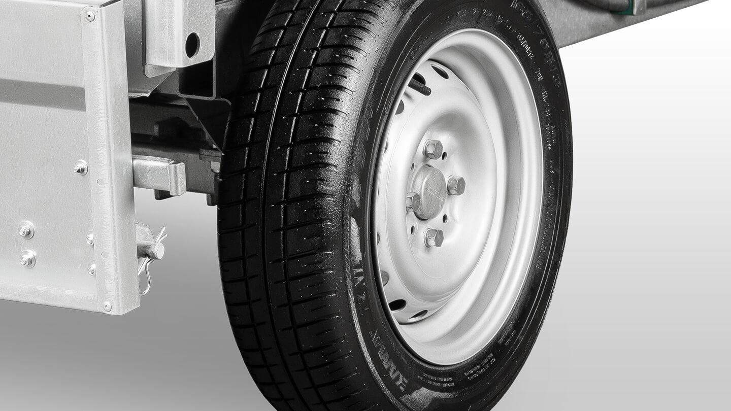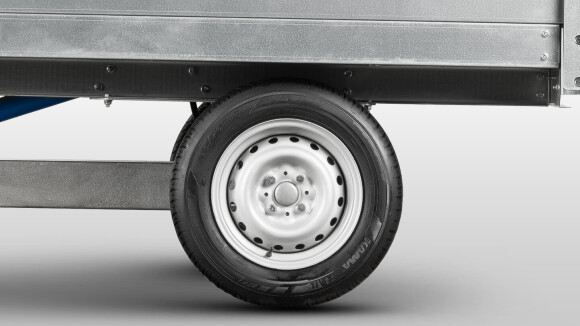 Прицеп оборудован 13‑дюймовыми колесами с шинами 165/70; дорожный просвет составляет 220 мм, а ширина колеи – 980 мм. Эти характеристики обеспечивают отличную проходимость и устойчивость даже на пересеченной местности. Отсутствие тормозной системы обусловлено оптимизированной конструкцией прицепов данного класса.