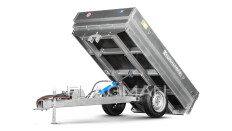 Габариты прицепа составляют 3100×1340×1040 мм, а размеры кузова – 2240×1340×310 мм, что обеспечивает вместимость 0,93 м³. Погрузочная высота в 700 мм облегчает процесс ручной загрузки, а угол подъема в 35° способствует эффективной и быстрой разгрузке грузов. Всё необходимое для подключения гидравлики уже входит в комплект, а гидравлические шланги оснащены быстросъемными соединениями.