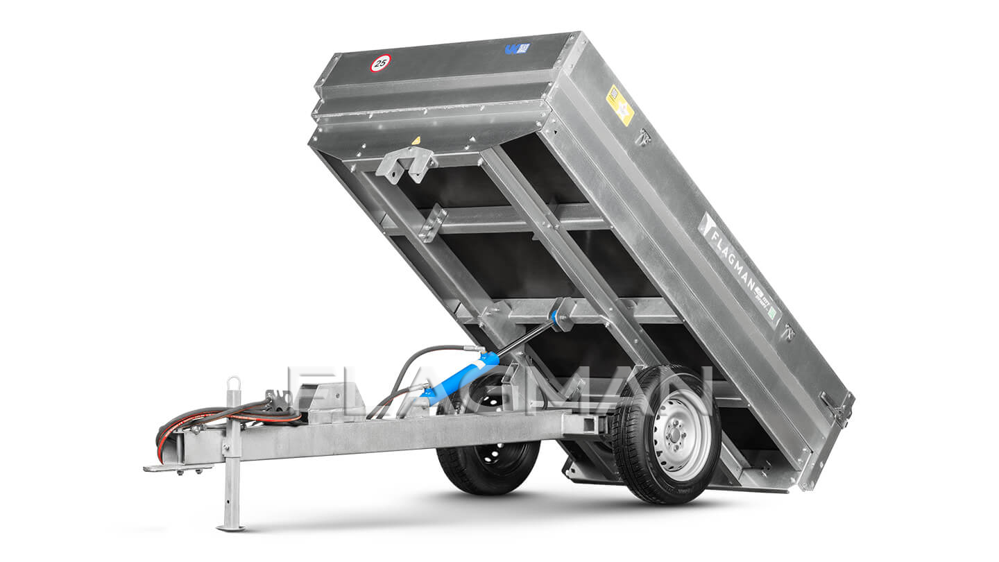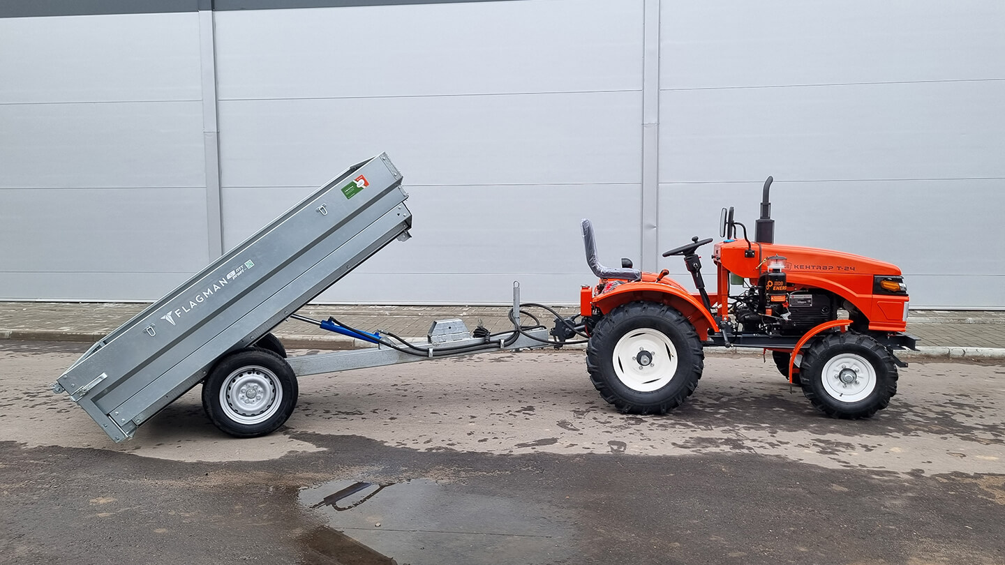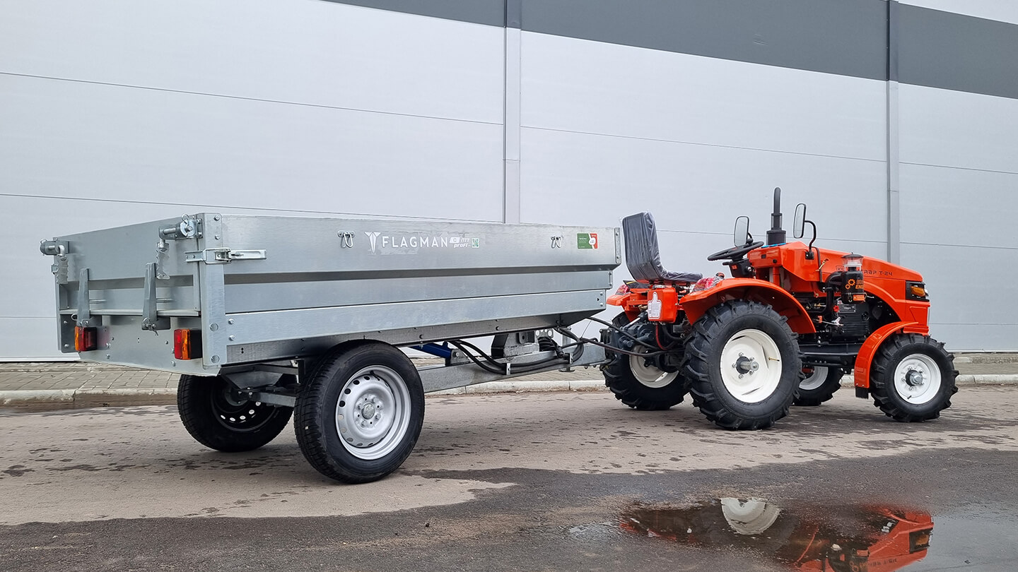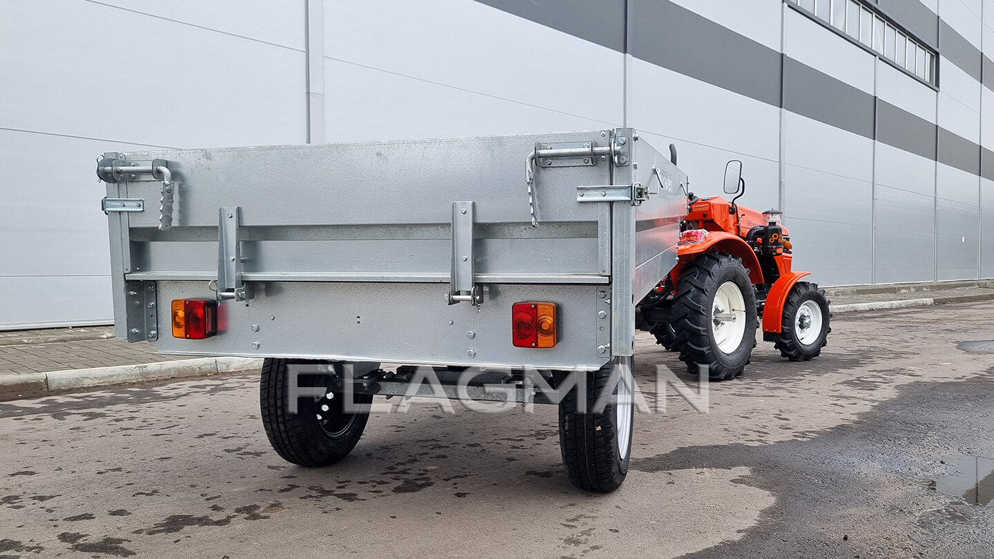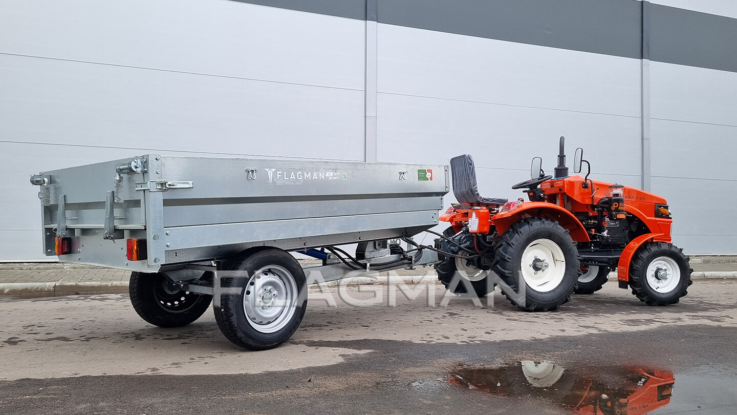 Прицеп Flagman | Флагман C/ПТТ — 1,0 с ПСМ к мини-трактору (самосвальный)