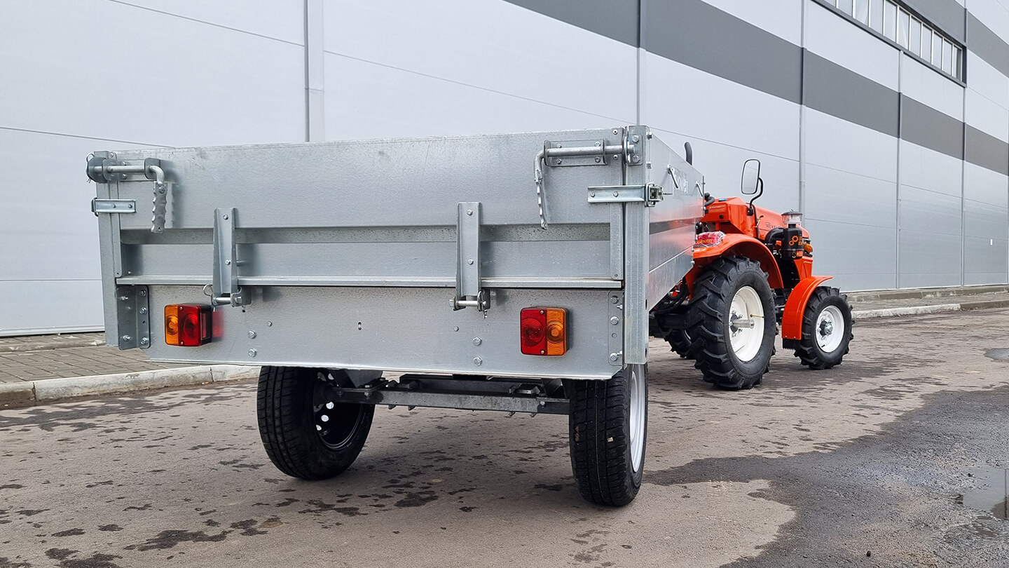 Прицеп разработан для работы с малогабаритными и среднегабаритными тракторами от 15 л.с. (тяговый класс 0,2–1,4).