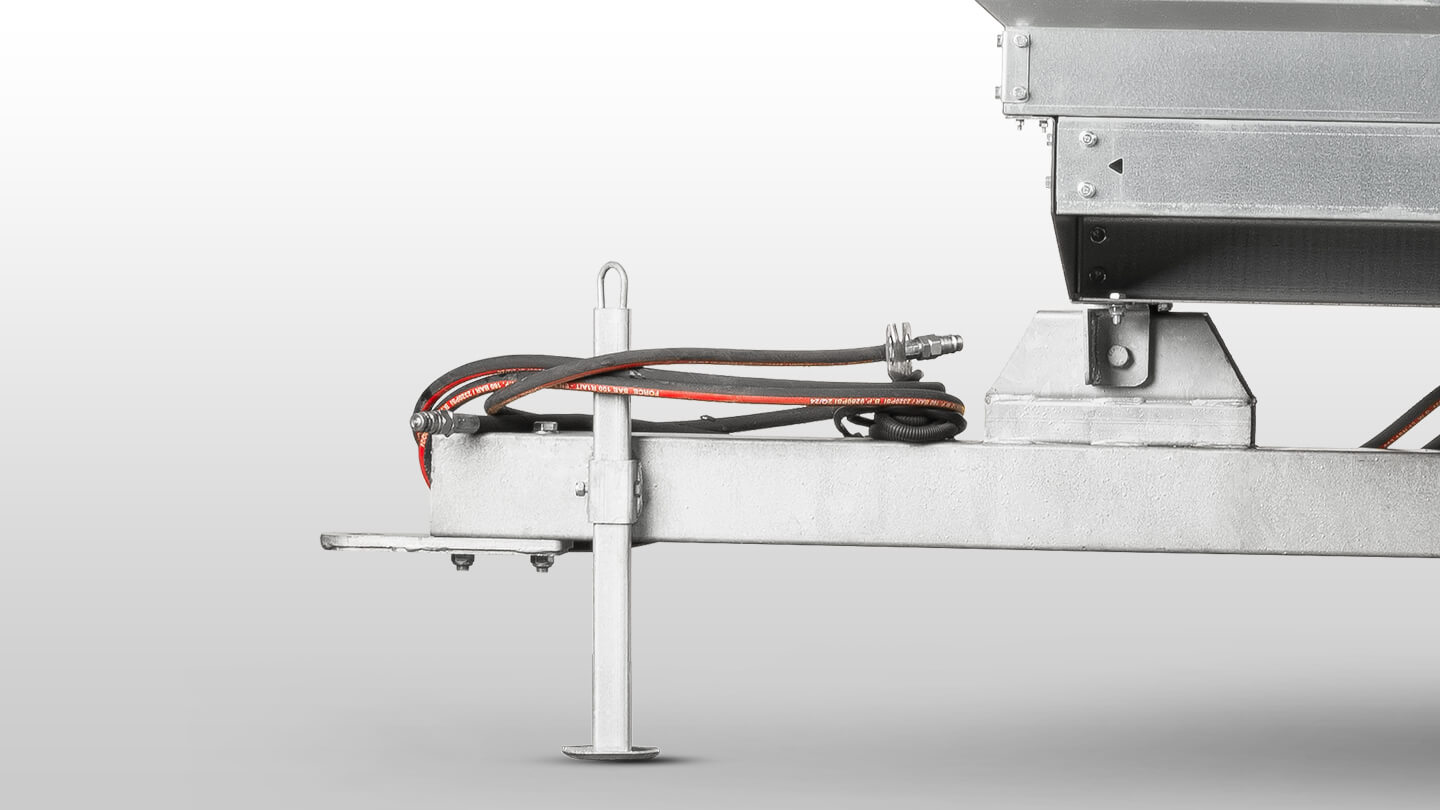 Прицеп спроектирован таким образом, чтобы максимально быстро и легко агрегатироваться с трактором. Необходимая высота дышла выставляется при помощи регулируемой стойки, отверстие под прицепной палец 40 мм, а шланги РВД оснащены быстросъемными муфтами.