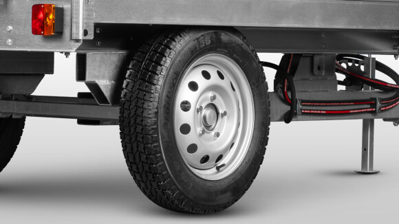 Колеса с шинами 185/75 R16 гарантируют проходимость, необходимую грузоподъемность и невысокую стоимость. Ступицы от легкового автомобиля надежны и проверены временем. В случае ремонта, необходимые детали доступны в любом магазине запчастей.