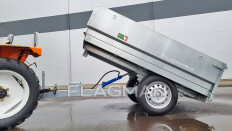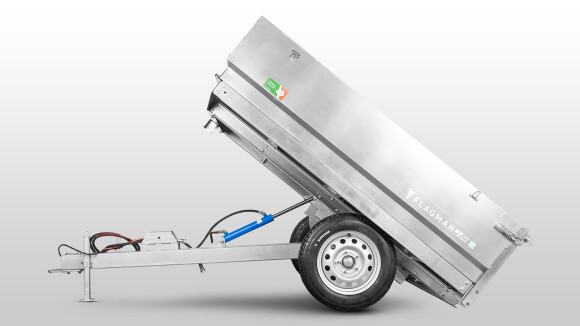 Самосвальный механизм с выгрузкой назад делает процесс разгрузки простым и быстрым, сокращая физический труд. Мощный гидроцилиндр со штоком диаметром 30 мм без труда поднимает полный кузов. Для удобного подключения к гидравлики трактора, РВД поставляются с разрывной муфтой. Угол поднятия платформы 40 градусов.