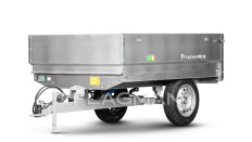 Рама и дышло прицепа изготовлены из прямоугольного 4 миллиметрового профиля. Ровные швы без шлака подтверждают высокую прочность и надежность конструкции, нагруженные места усилены косынками. Прицепное толщиной 12 мм выполнено под палец диаметром 40 мм. Конструкция предусматривает полную оцинковку. Такое решение надолго защищает от коррозии и мелких царапин.