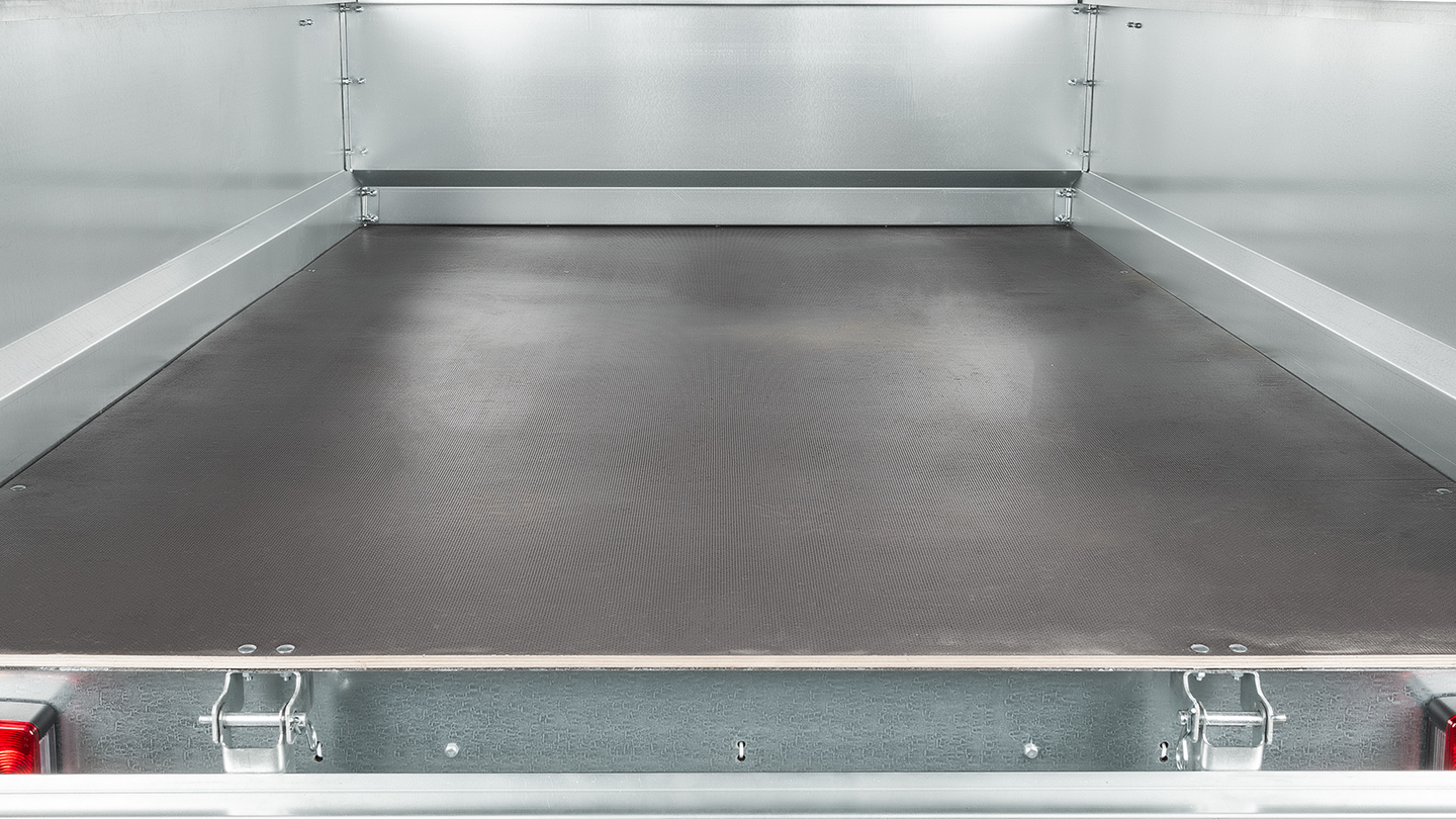 Борта из цельного стального листа толщиной 1,5 мм усилены ребрами жесткости и профильным каркасом по периметру. Прочная конструкция устойчива к деформациям при эксплуатации и сохраняет геометрию даже при значительных нагрузках, что повышает надежность и долговечность прицепа.