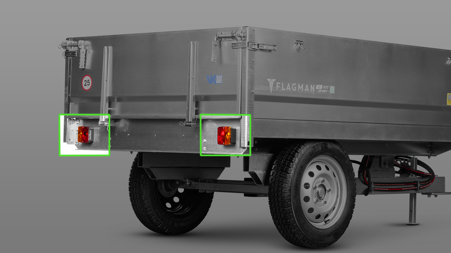 Приобретение прицепа с ПСМ упрощает его регистрацию и дает возможность эксплуатации по дорогам общего пользования. Прицеп укомплектован всем необходимым: креплением под номер и светотехникой (в комплекте задние фонари и штекер под стандартную 7 пиновую розетку).