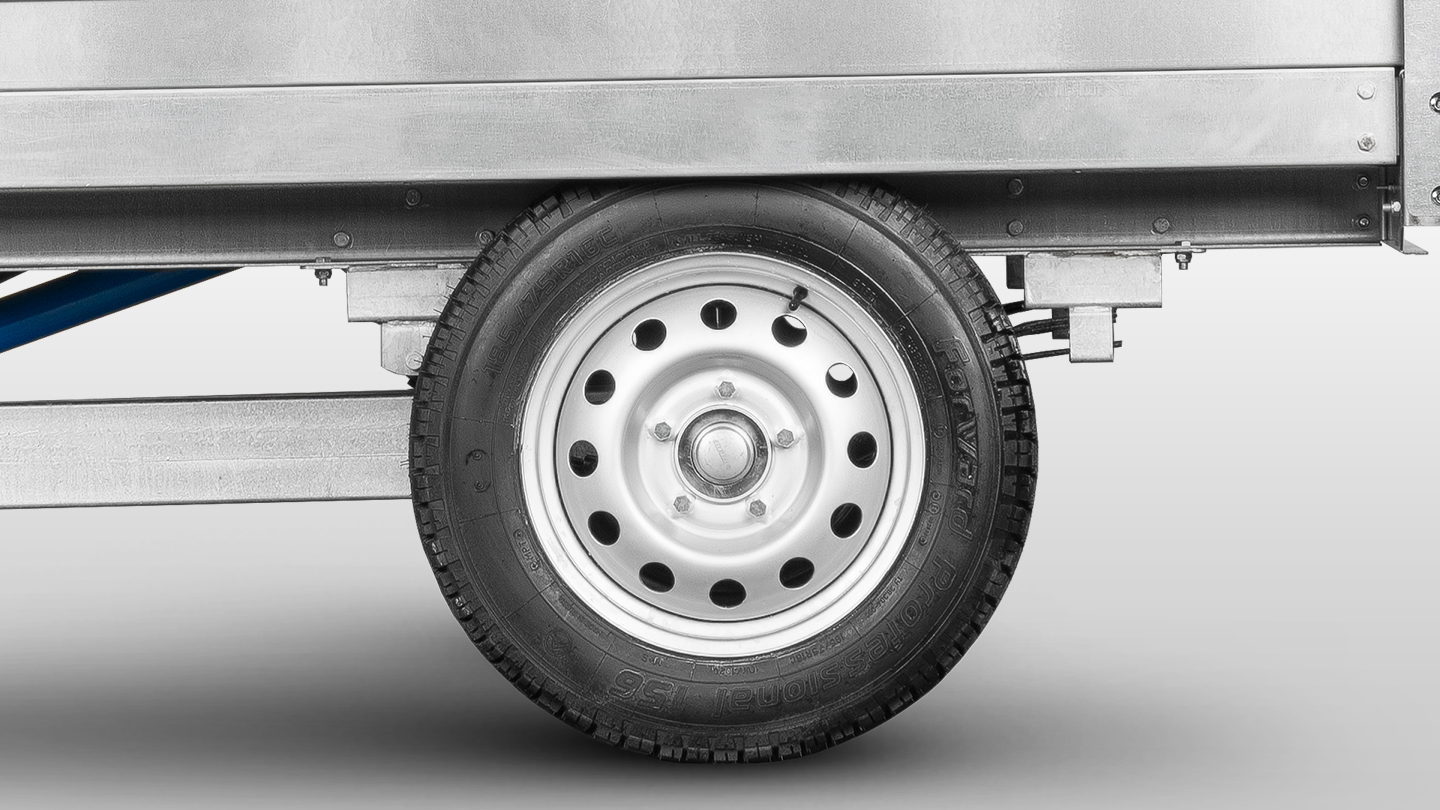 Колеса с шинами 185/75 R16 гарантируют проходимость, необходимую грузоподъемность и невысокую стоимость. Ступицы от легкового автомобиля надежны и проверены временем. В случае ремонта, необходимые детали доступны в любом магазине запчастей.